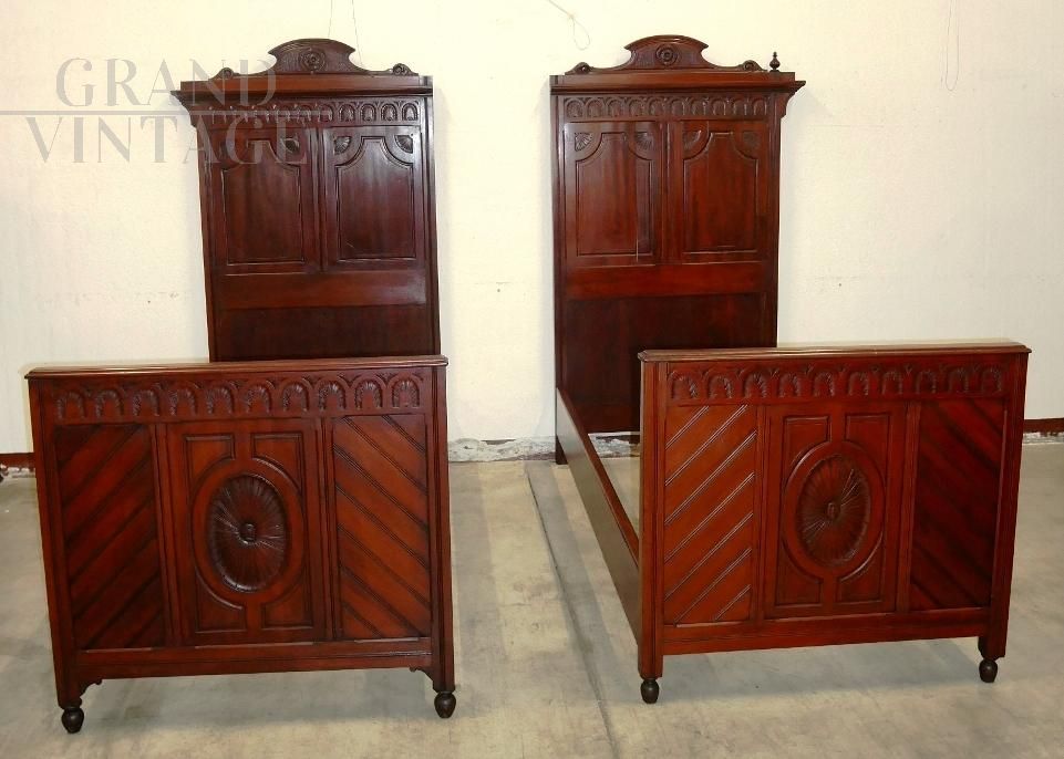 Antique carved double bed divisible into two singles, Italy 1920s