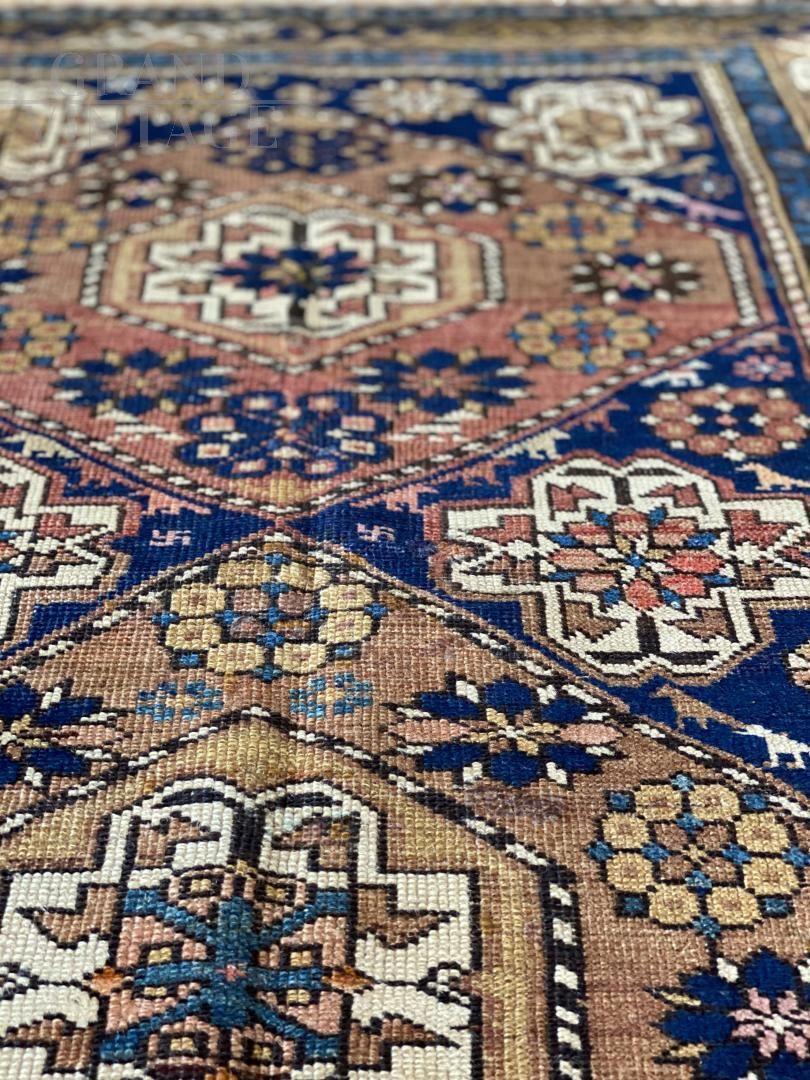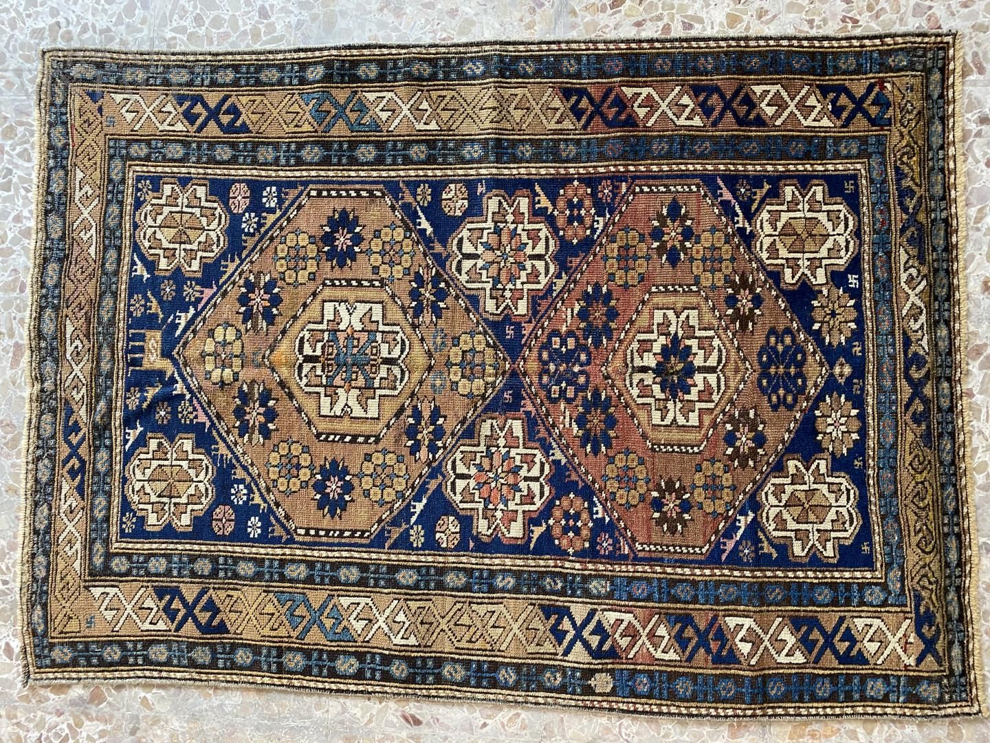 Shirvan Caucasus antique manufacture, early 1900s. Warp and fleece weft in polychrome wool, excellent state of conservation. Carpet accompanied by a certificate of authenticity issued by an expert of the Milan Chamber of Commerce.