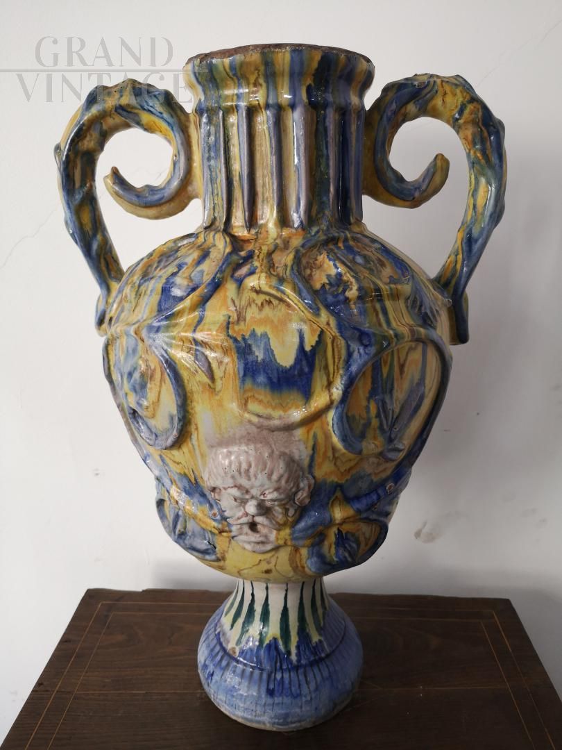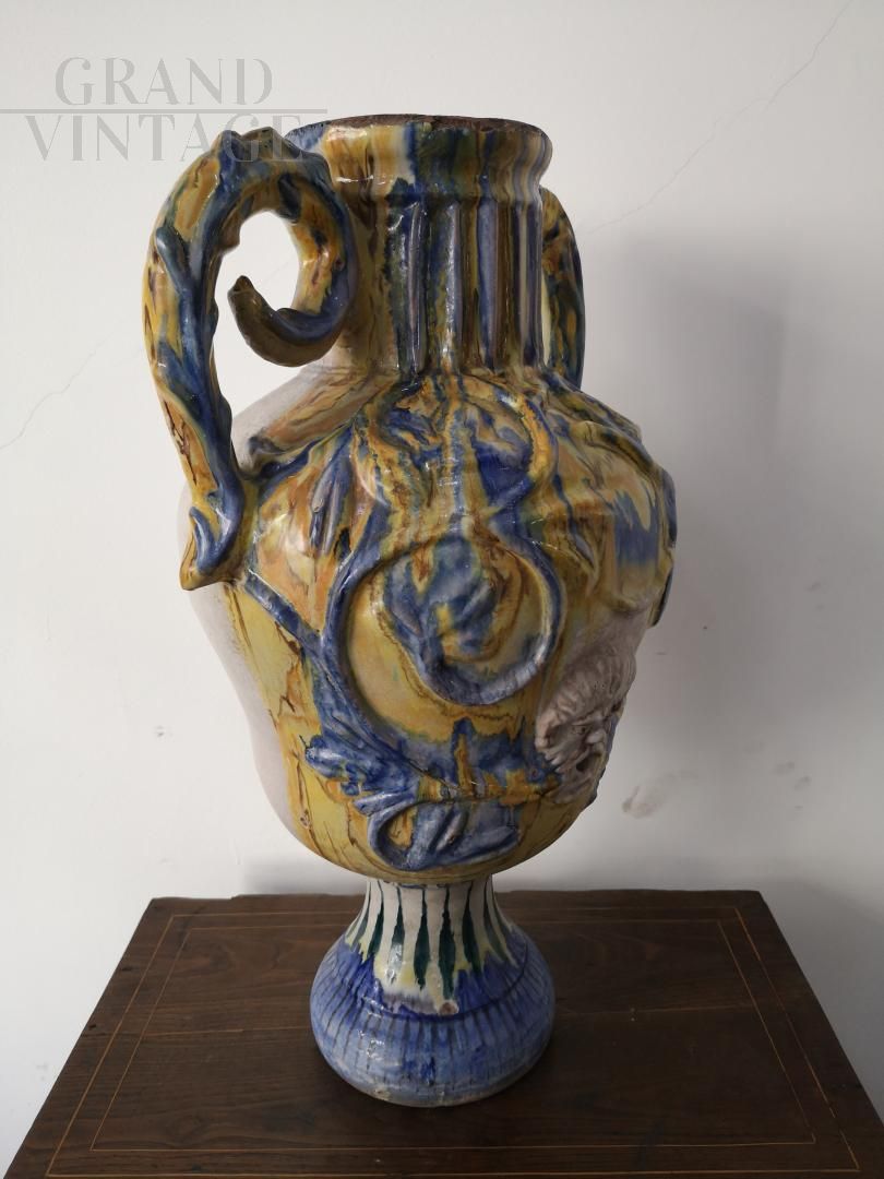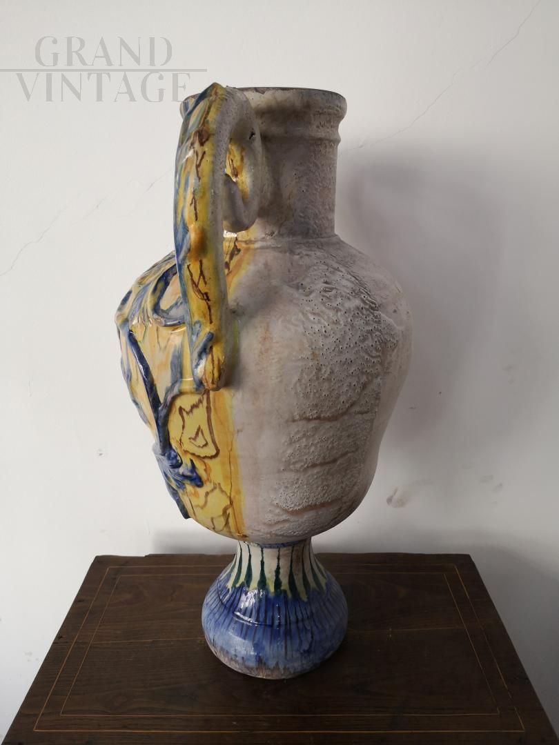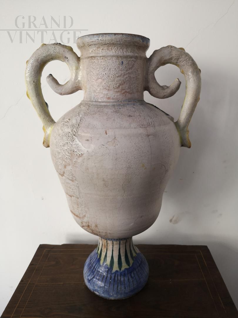Antique ceramic amphora vase from Caltagirone, mid-19th century