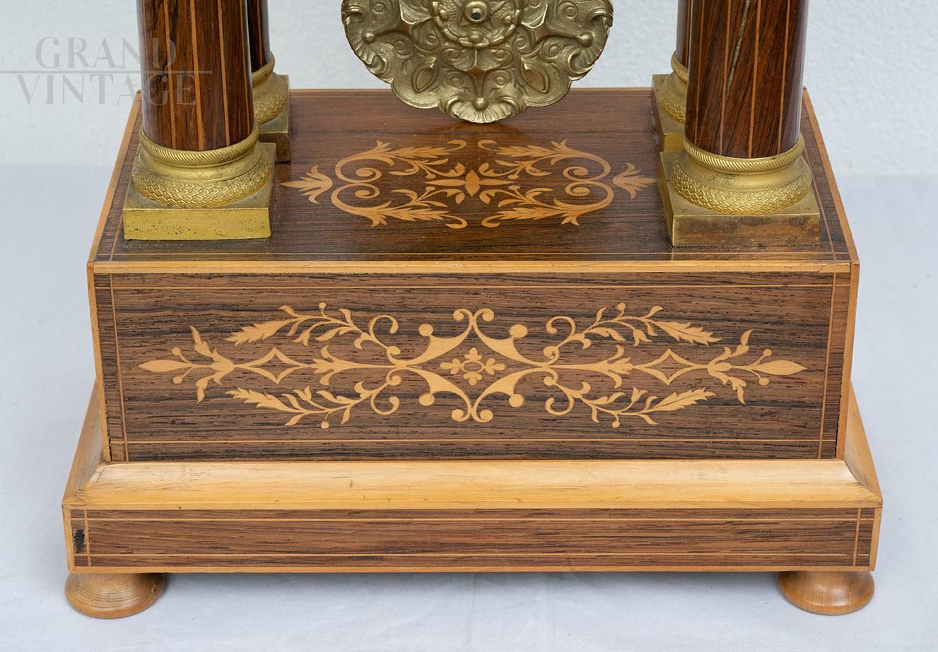 Antique Charles X clock in precious exotic woods, France 19th century