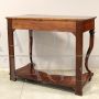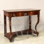 Antique console from the Charles X period in solid walnut and walnut veneer, with drawer under the top, from Italy in the first half of the 19th century. Restored.