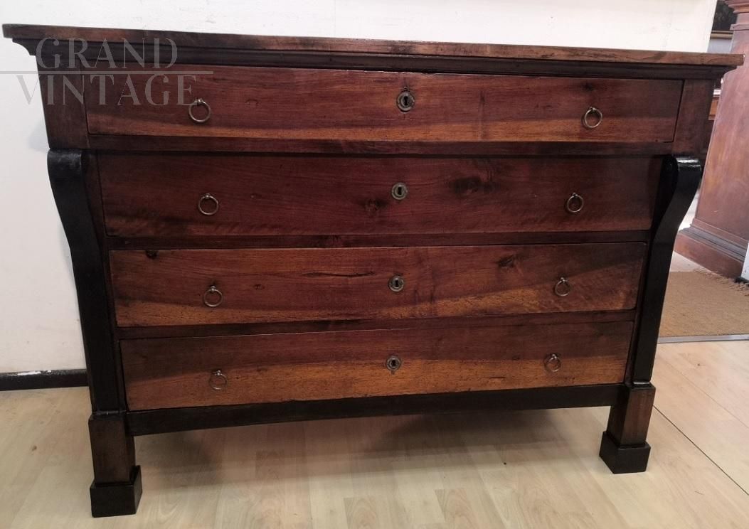 Antique chest of drawers in walnut from the Empire period - Italy, early 19th century