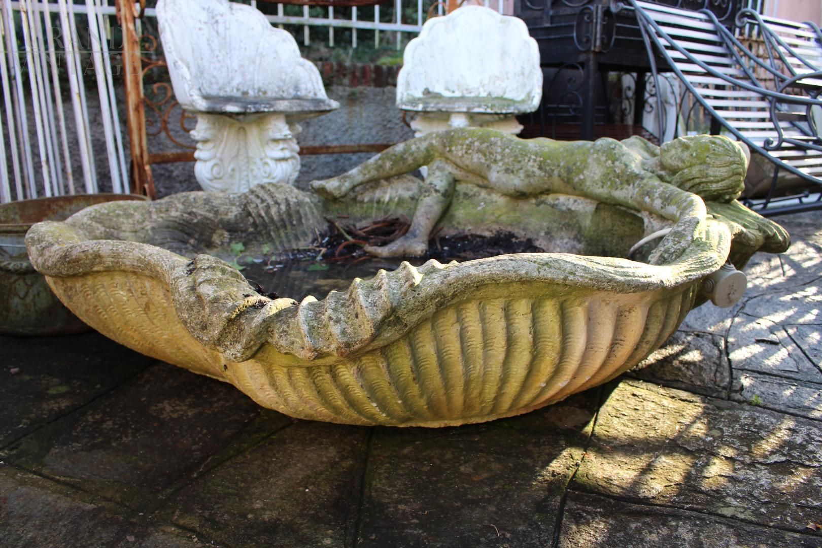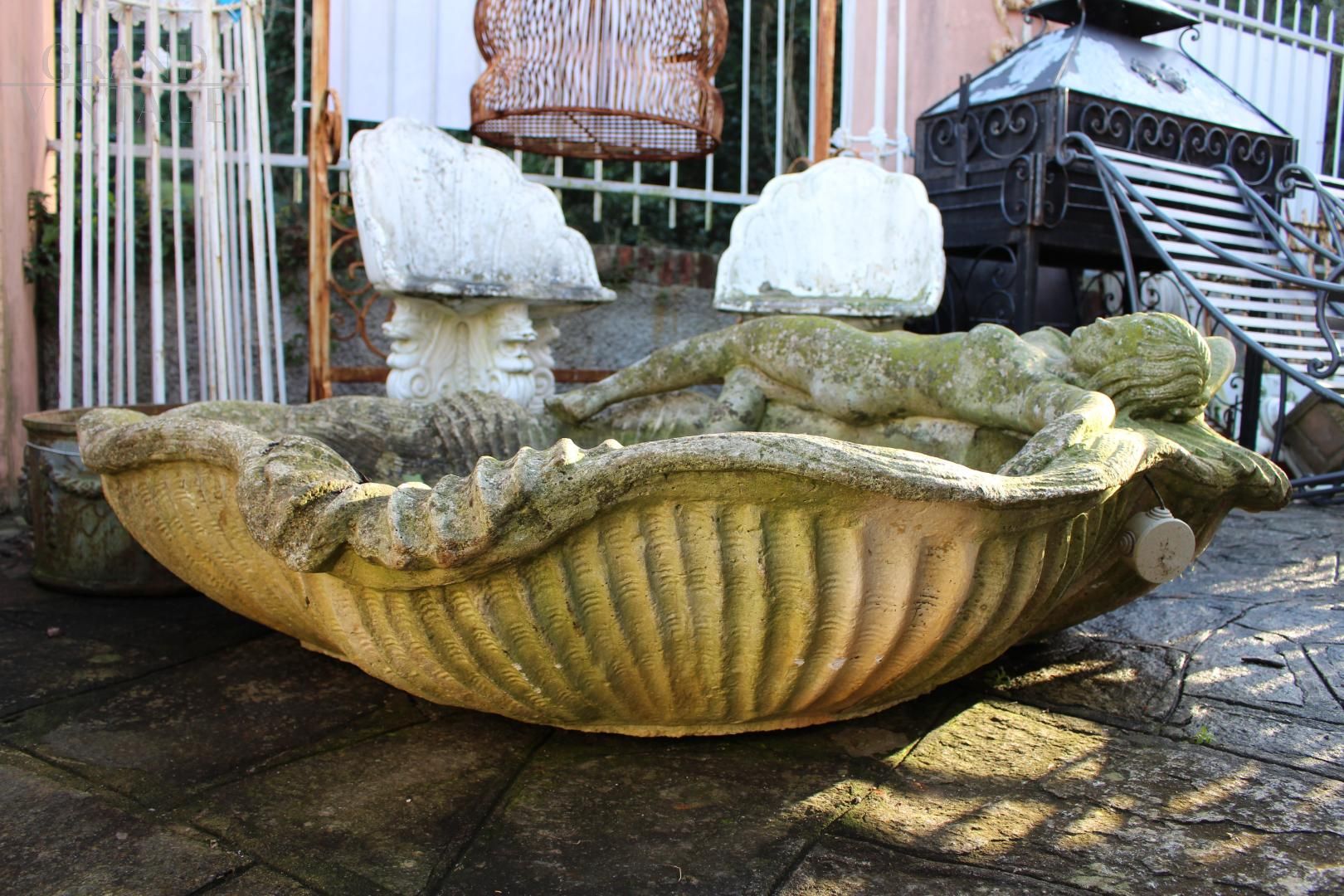 Antique conglomerate basin with female figures