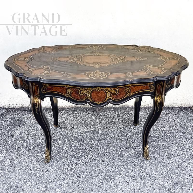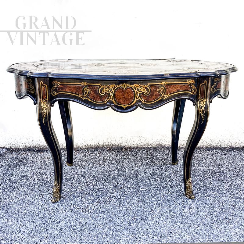 Antique desk table in Boulle style from the Napoleon III era - 19th century