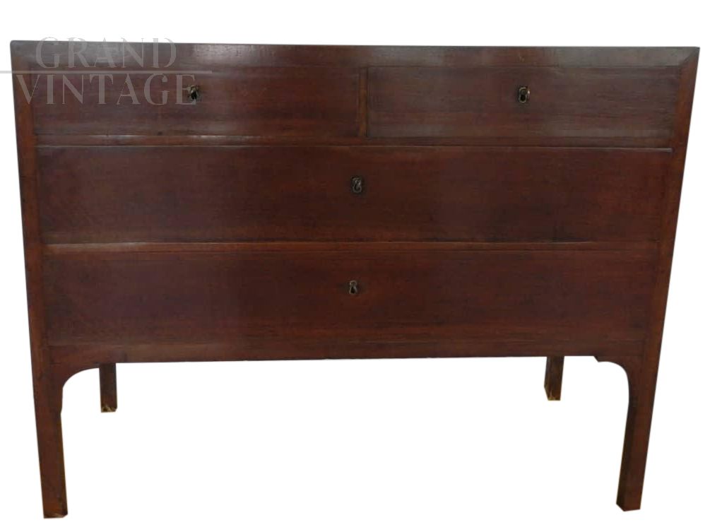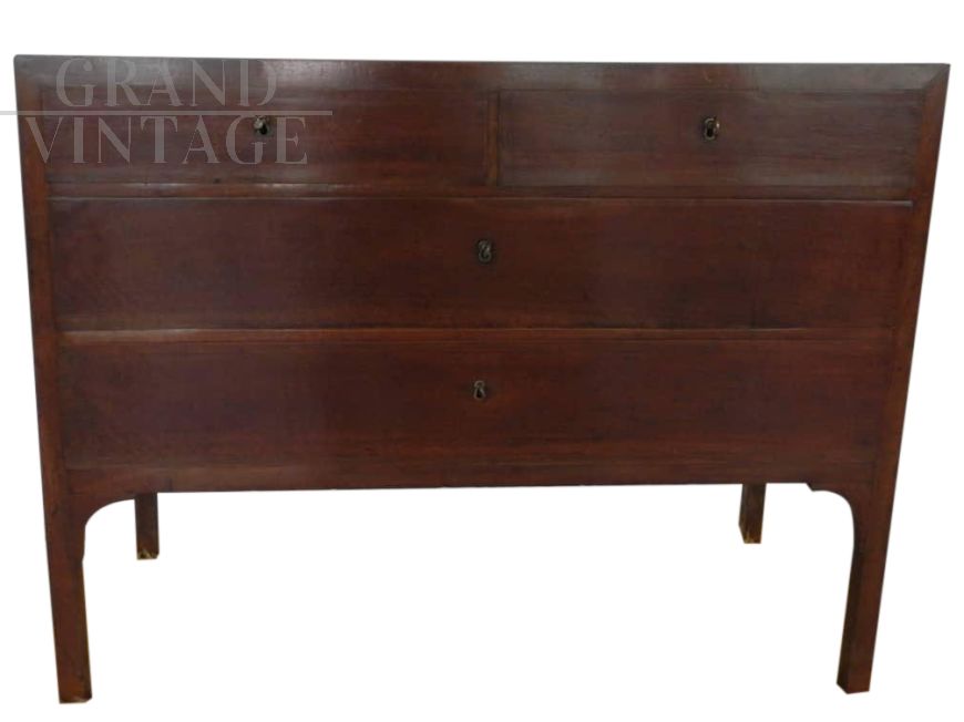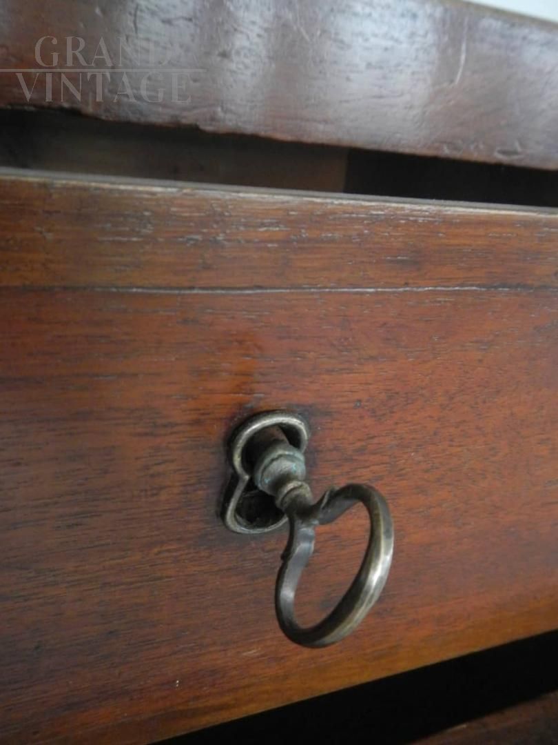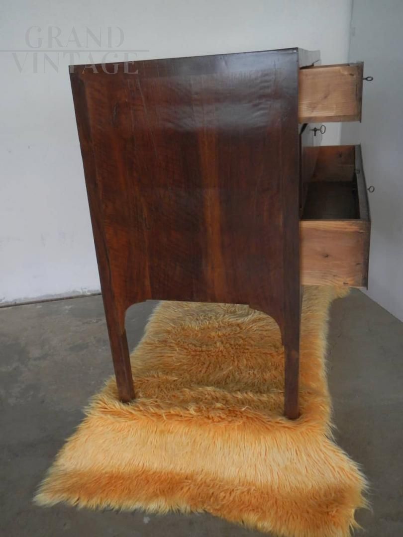 Elegant Italian Empire chest of drawers from the late 19th century, in national walnut, restored of the missing parts and wick polished. The locks, keys and escutcheons are original. Back in fir wood with patina and interior of the drawers in original condition.