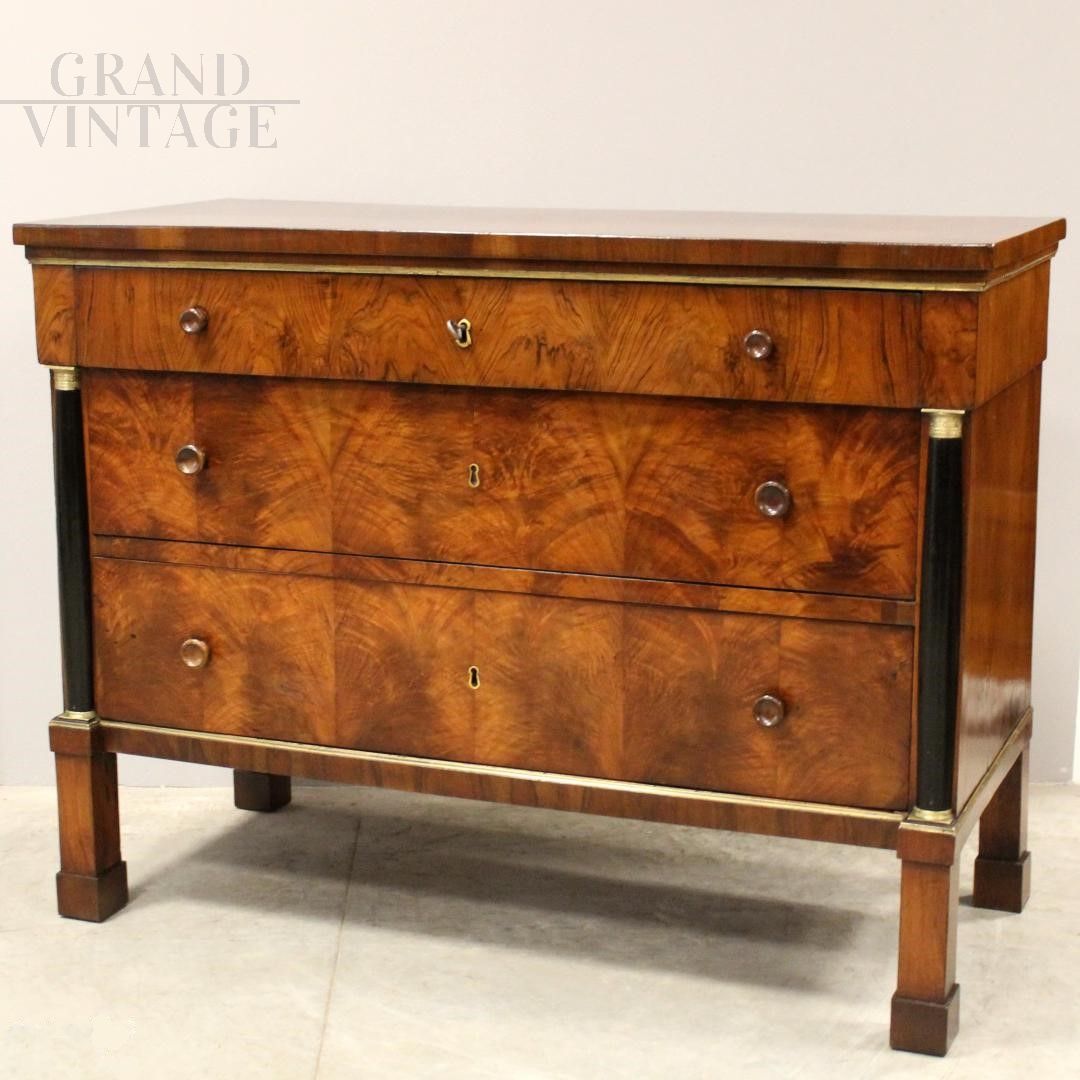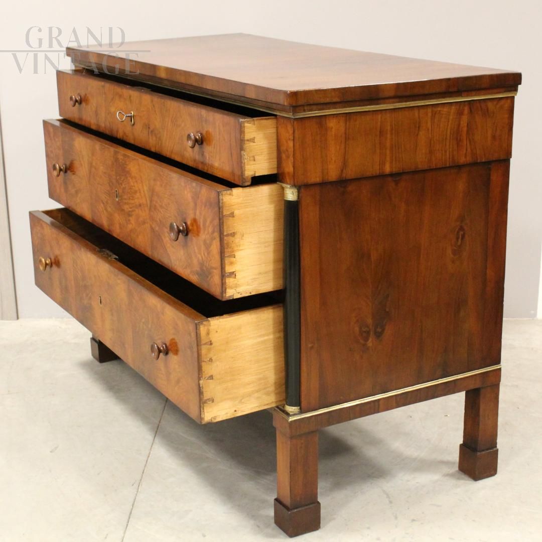 Antique Empire chest of drawers in walnut, Italy 19th century