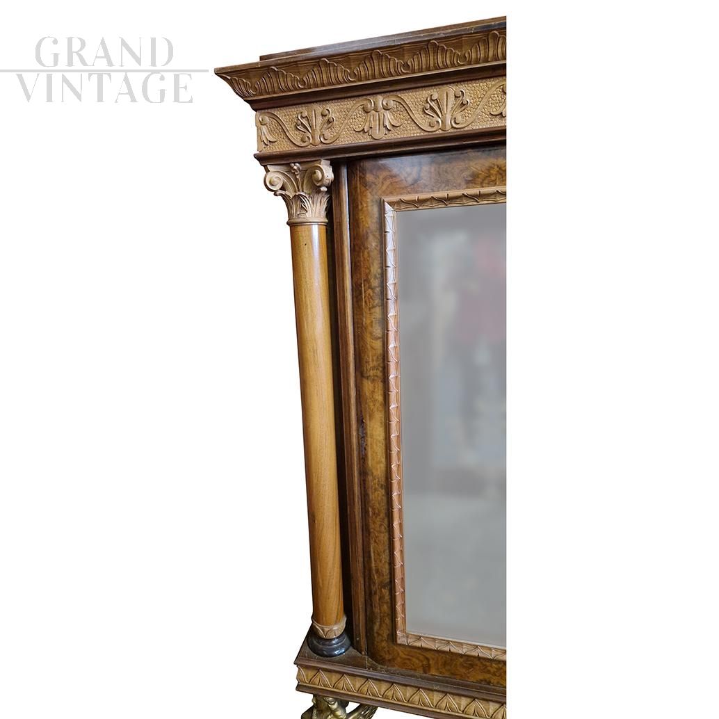 Antique Empire style display cabinet sideboard with columns and caryatids