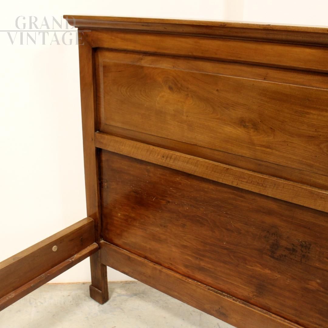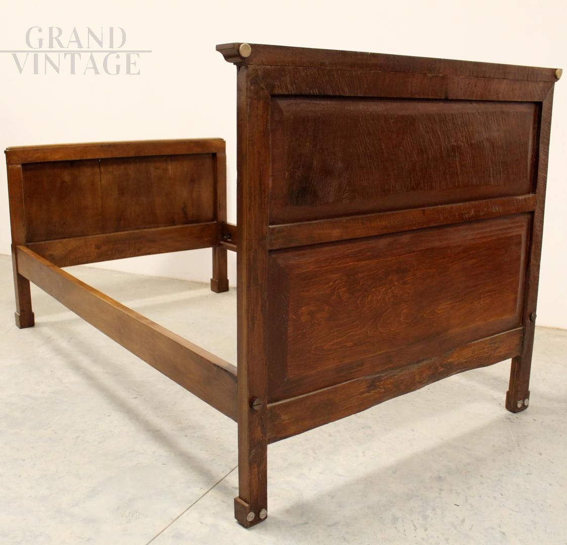 Antique Empire bed in solid walnut from the early 19th century, of Italian origin, in excellent condition.