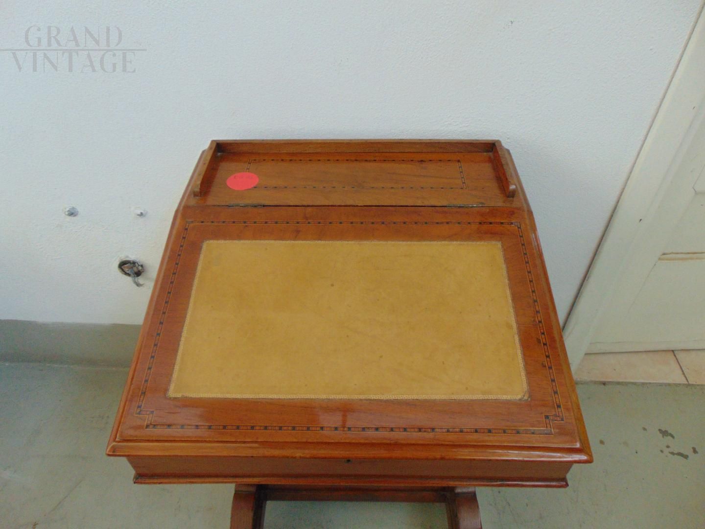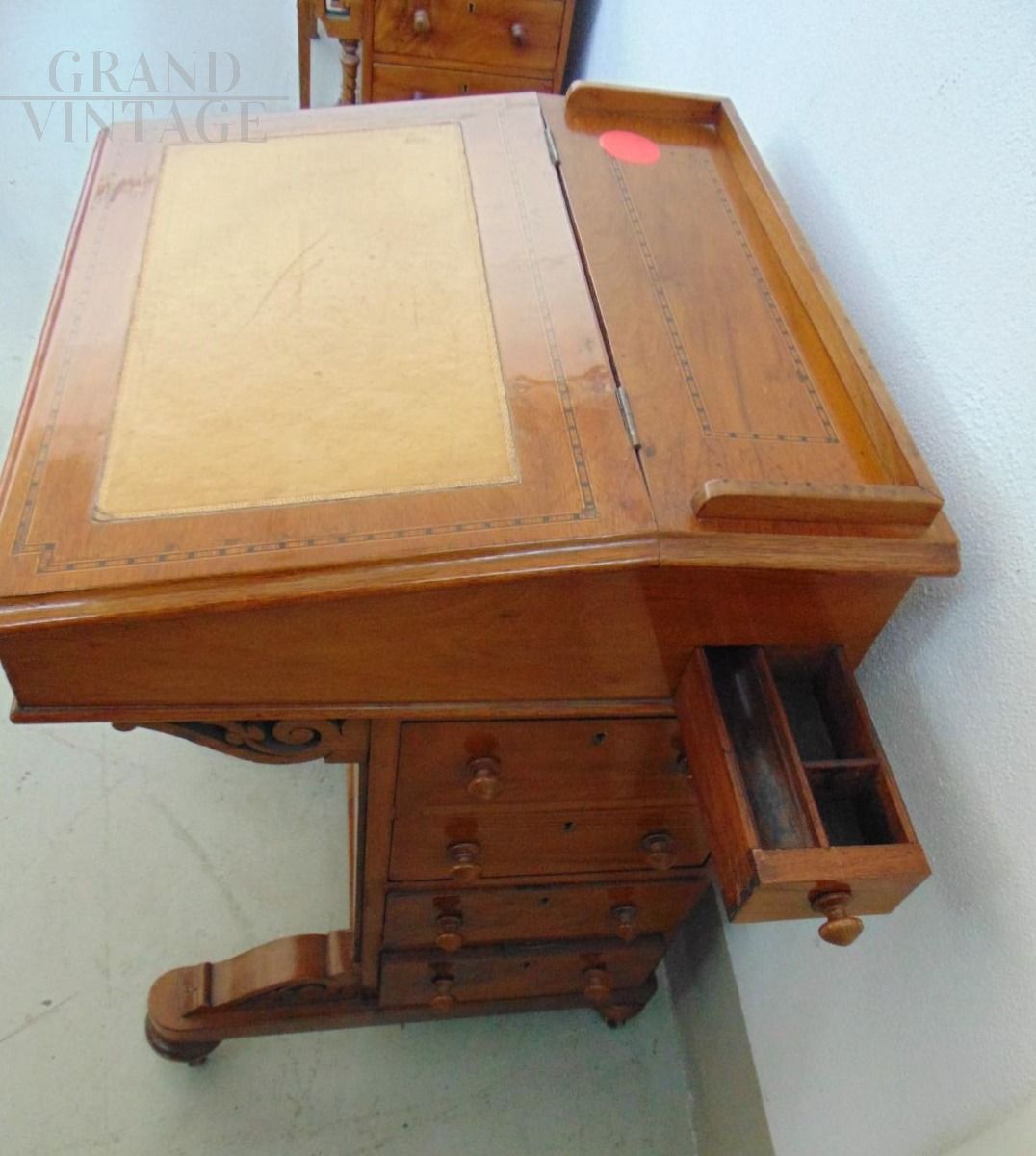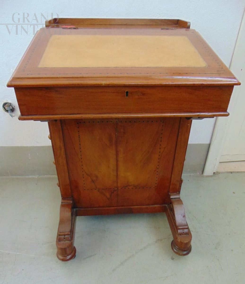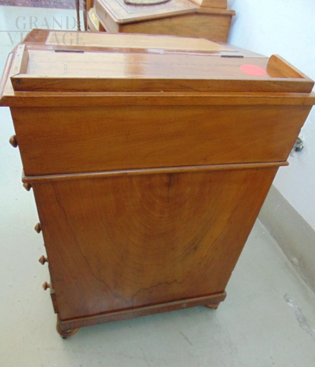 Antique English davenport - ship's writing desk in mahogany with marquetry and side drawers.