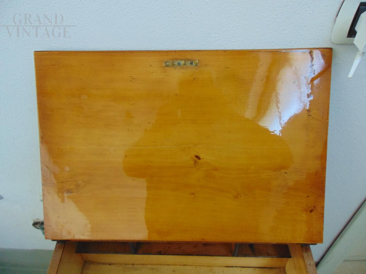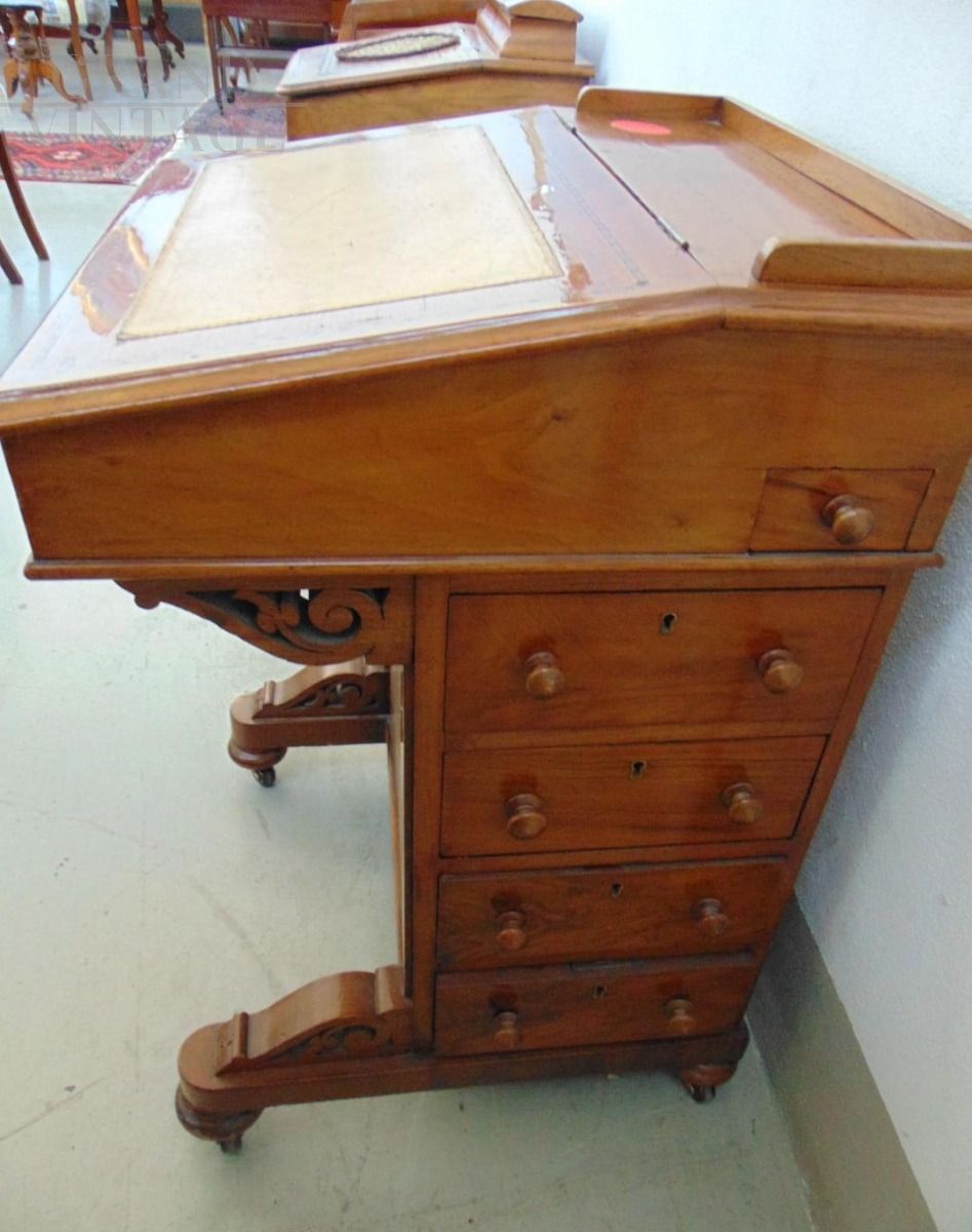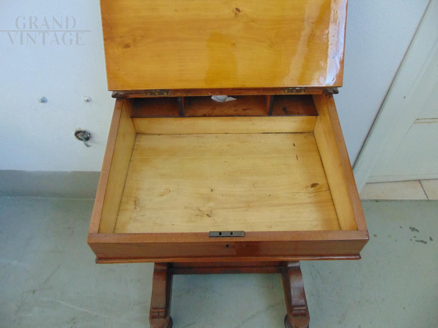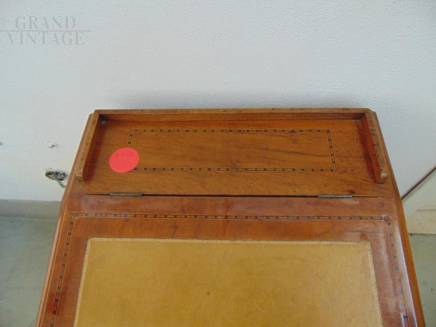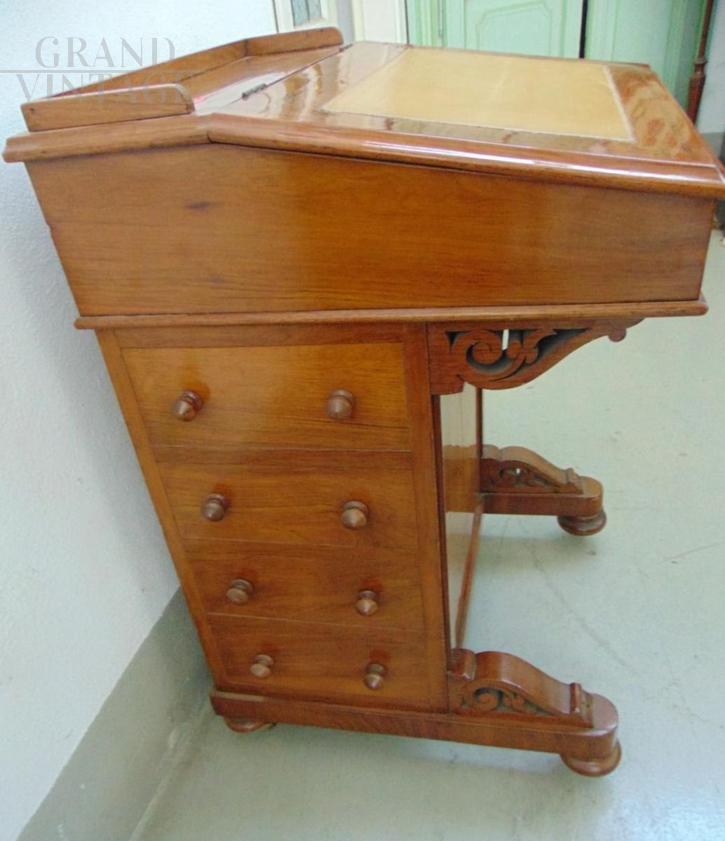Antique English davenport - ship's writing desk in mahogany with marquetry and side drawers.