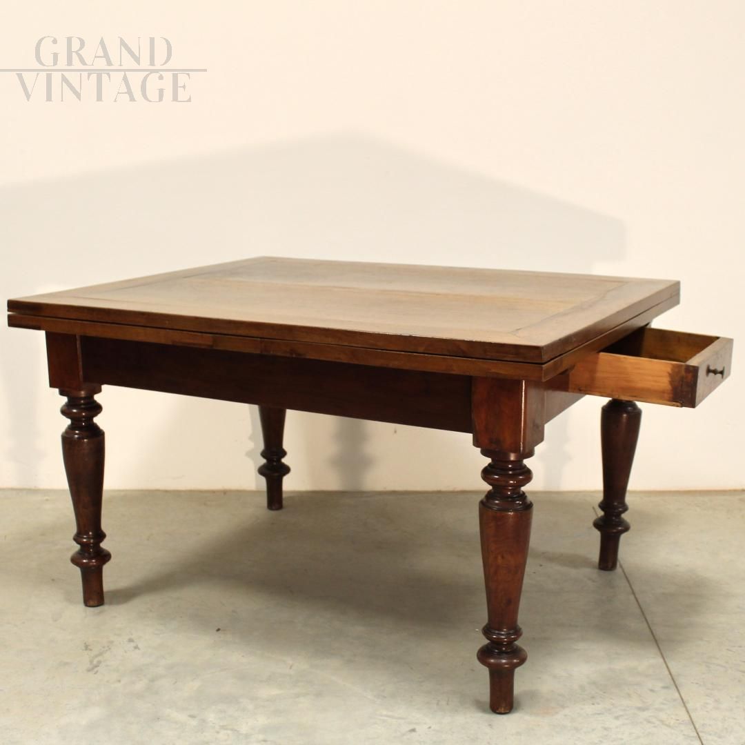 Antique extendable draw-leaf table in walnut, Italy 19th century