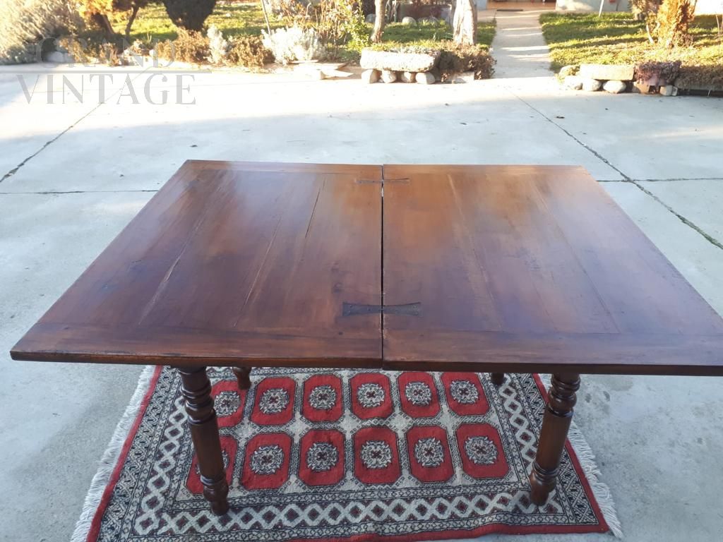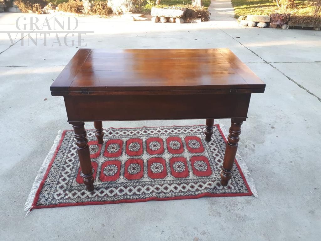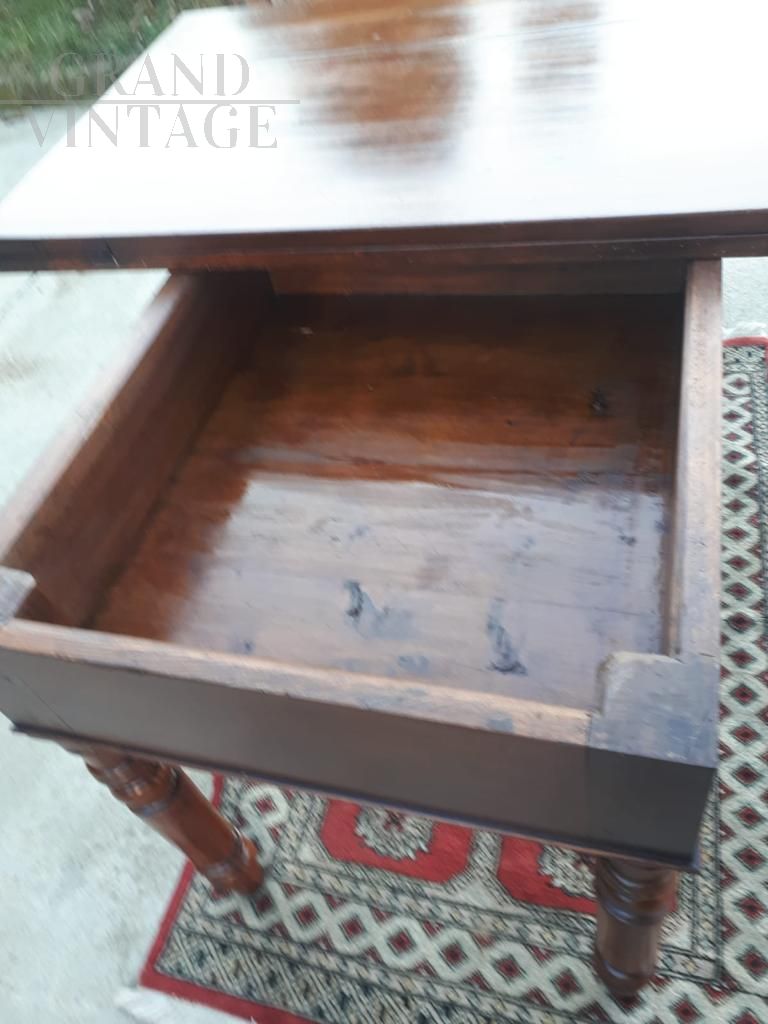 Antique extendable table, from the mid-19th century, in walnut wood, with drawer on the short side. Restored and ready to use.
