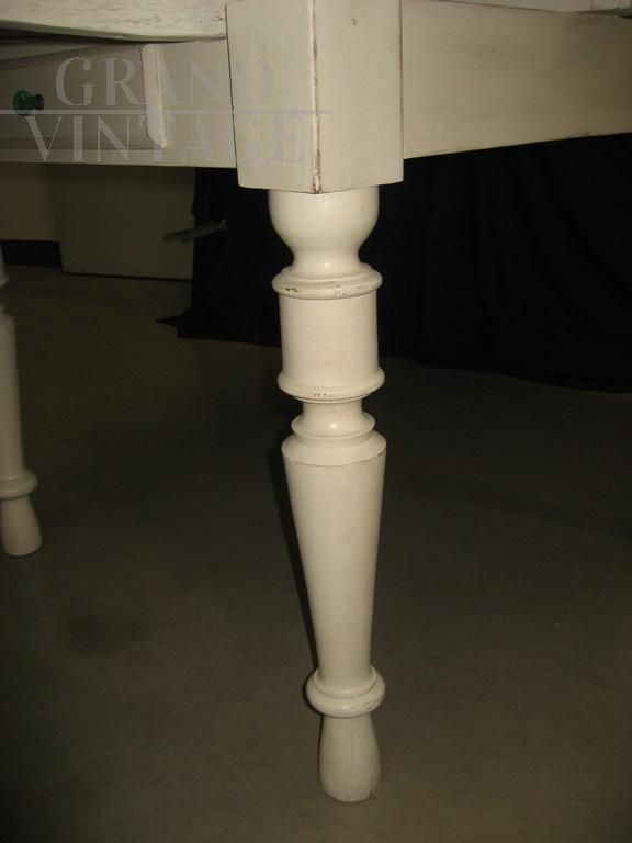 Tavolo antico allungabile a tiri, laccato di recente.