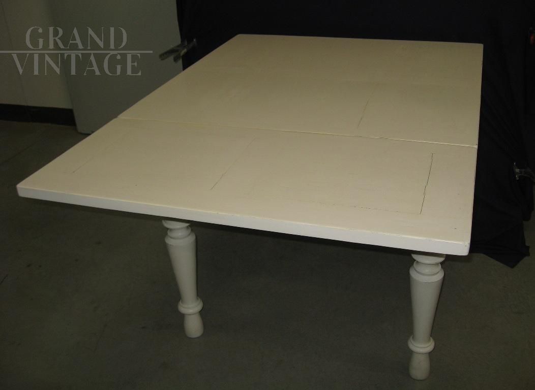Antique extendable table, ivory color lacquered