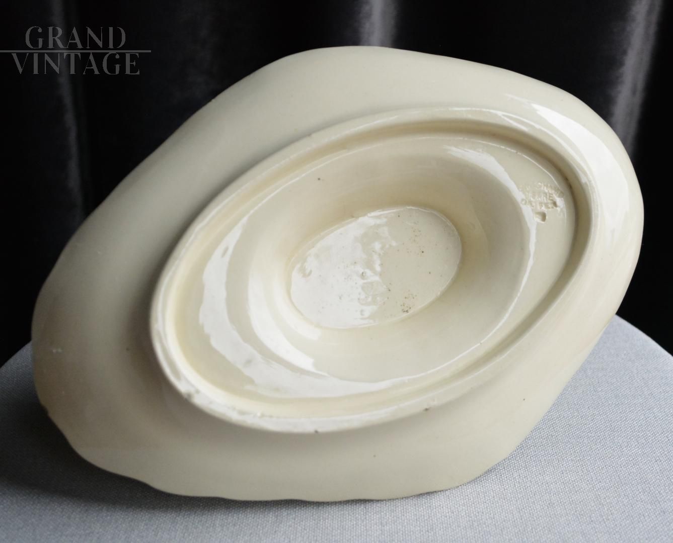 Vintage gravy boat of French manufacture Terre de Fer, object embellished with a very refined decoration, shows small signs of wear given by the age of the object.
