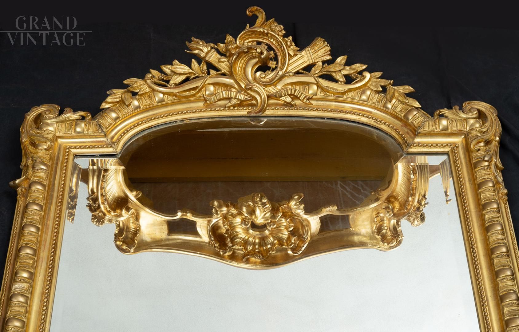 Antique French Napoleon III mirror in gilded and carved wood, 19th century