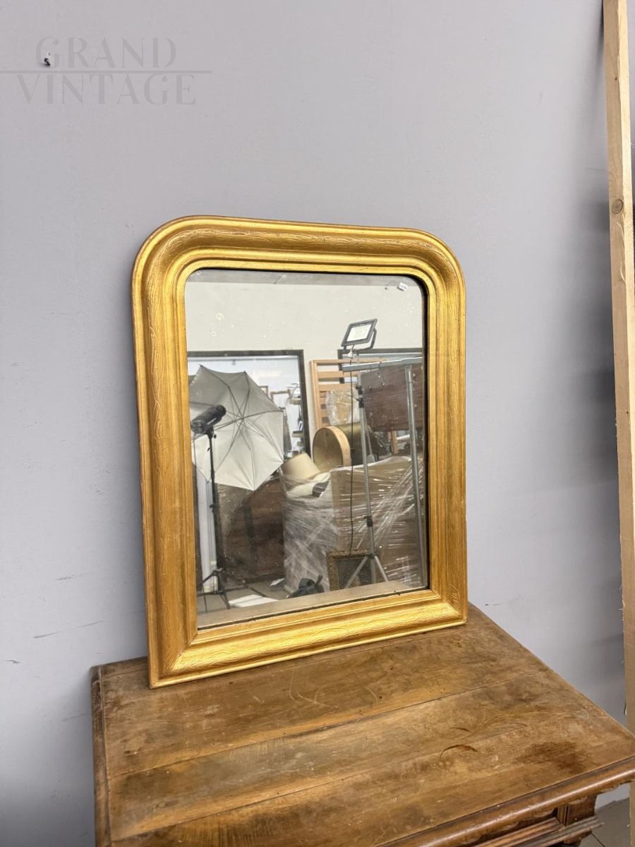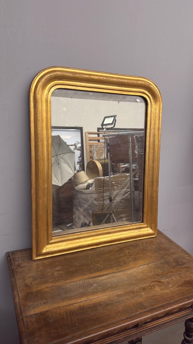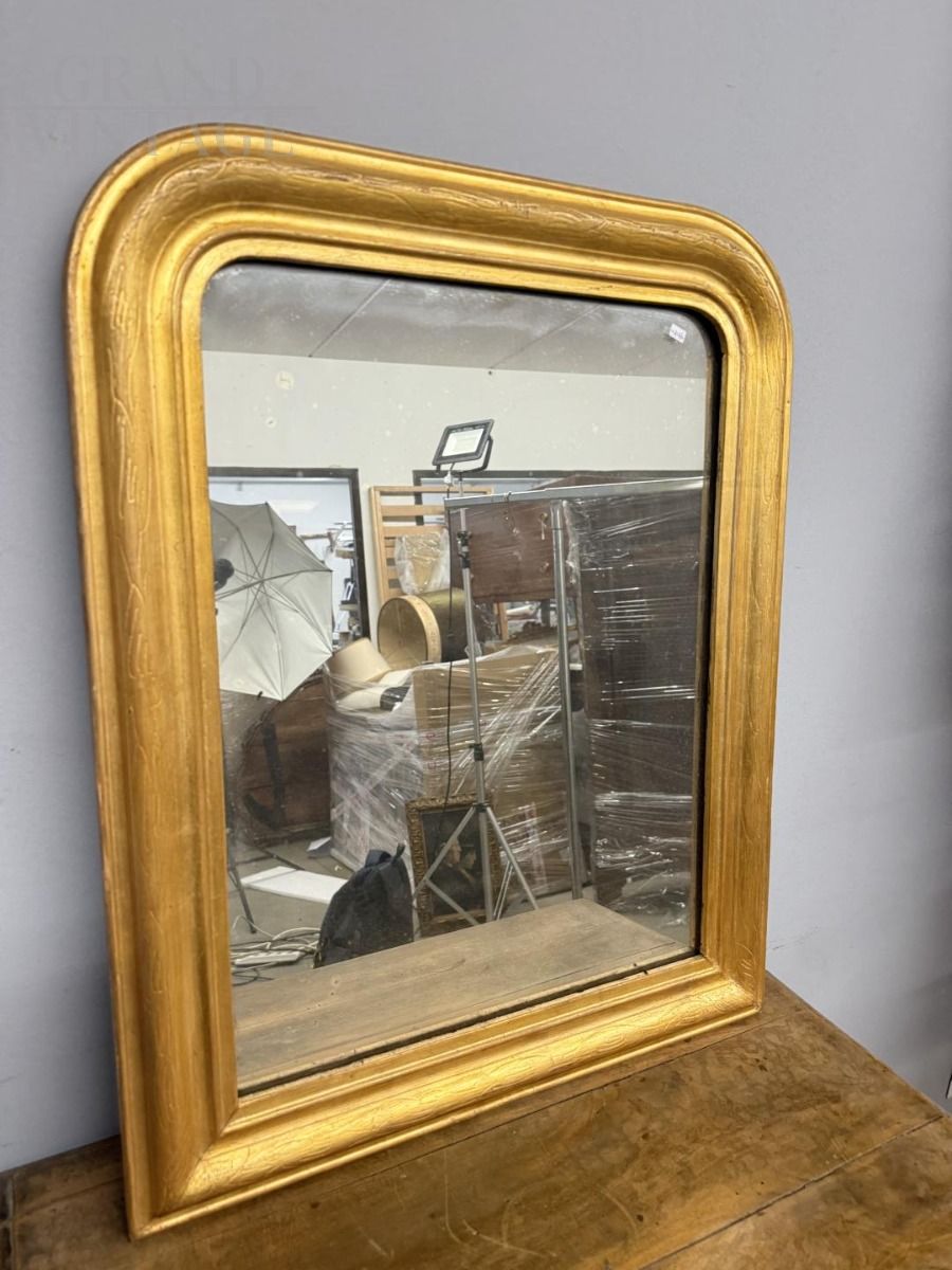 Antique gilded free-standing countertop mirror from the 19th century, to be placed on a chest of drawers or sideboard, 74 x 58 cm.