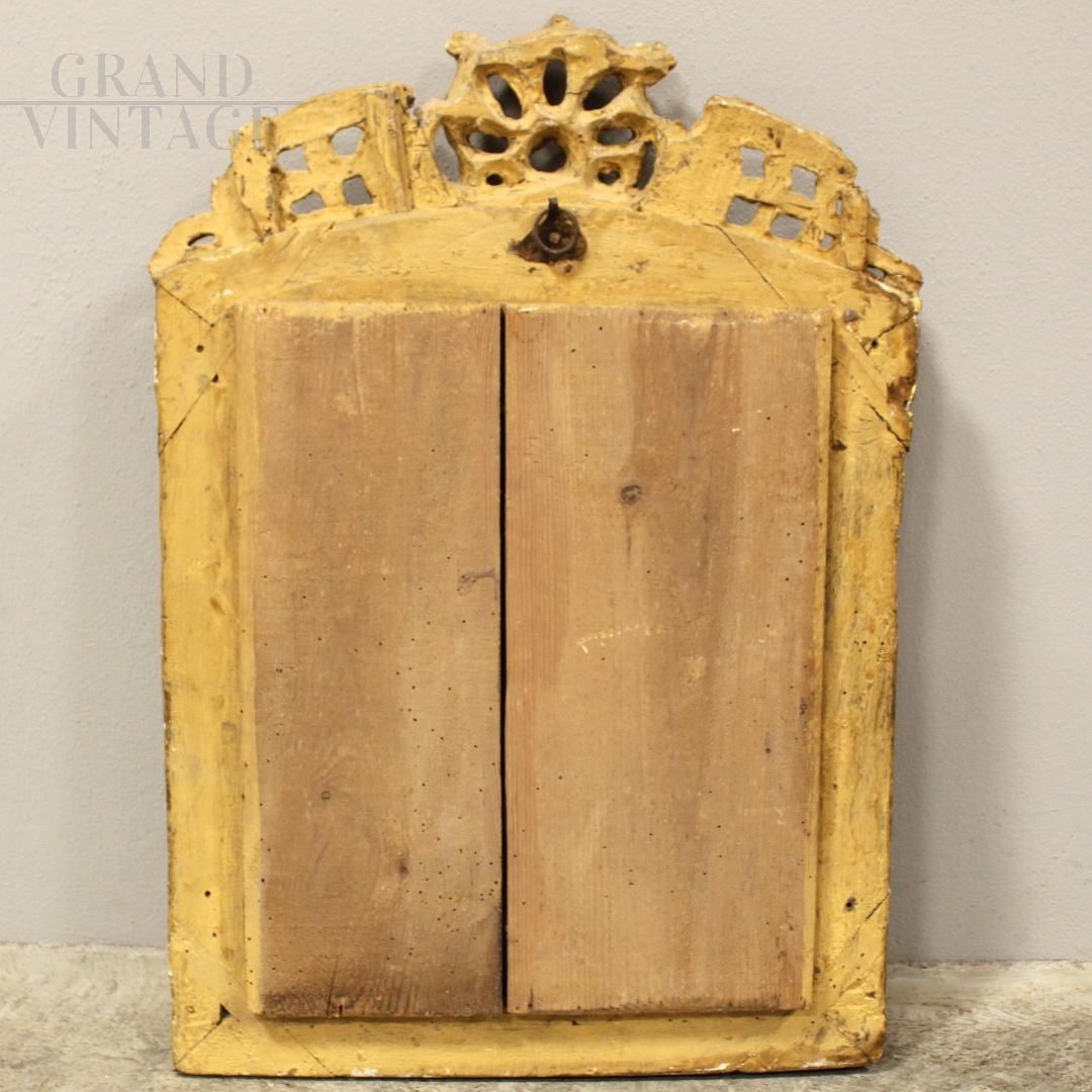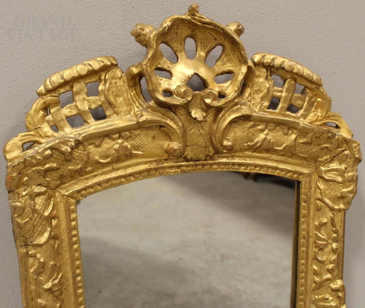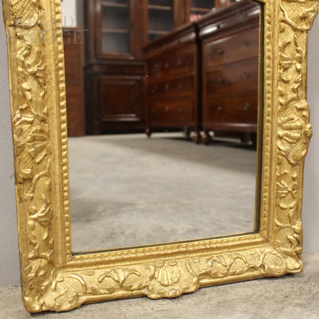 Antique mirror from the Louis XV era in gilded and richly carved wood, made in the second half of the 18th century, in perfect conservation conditions.