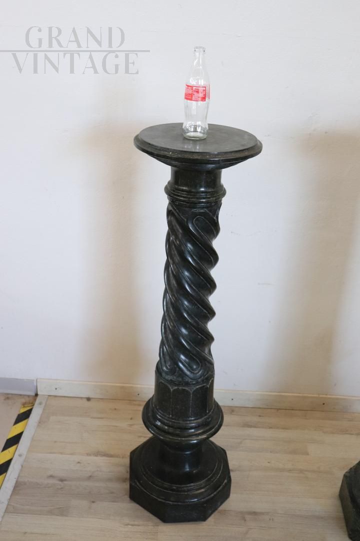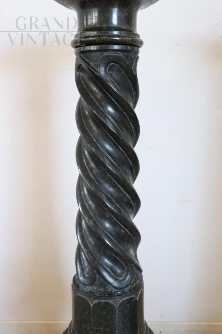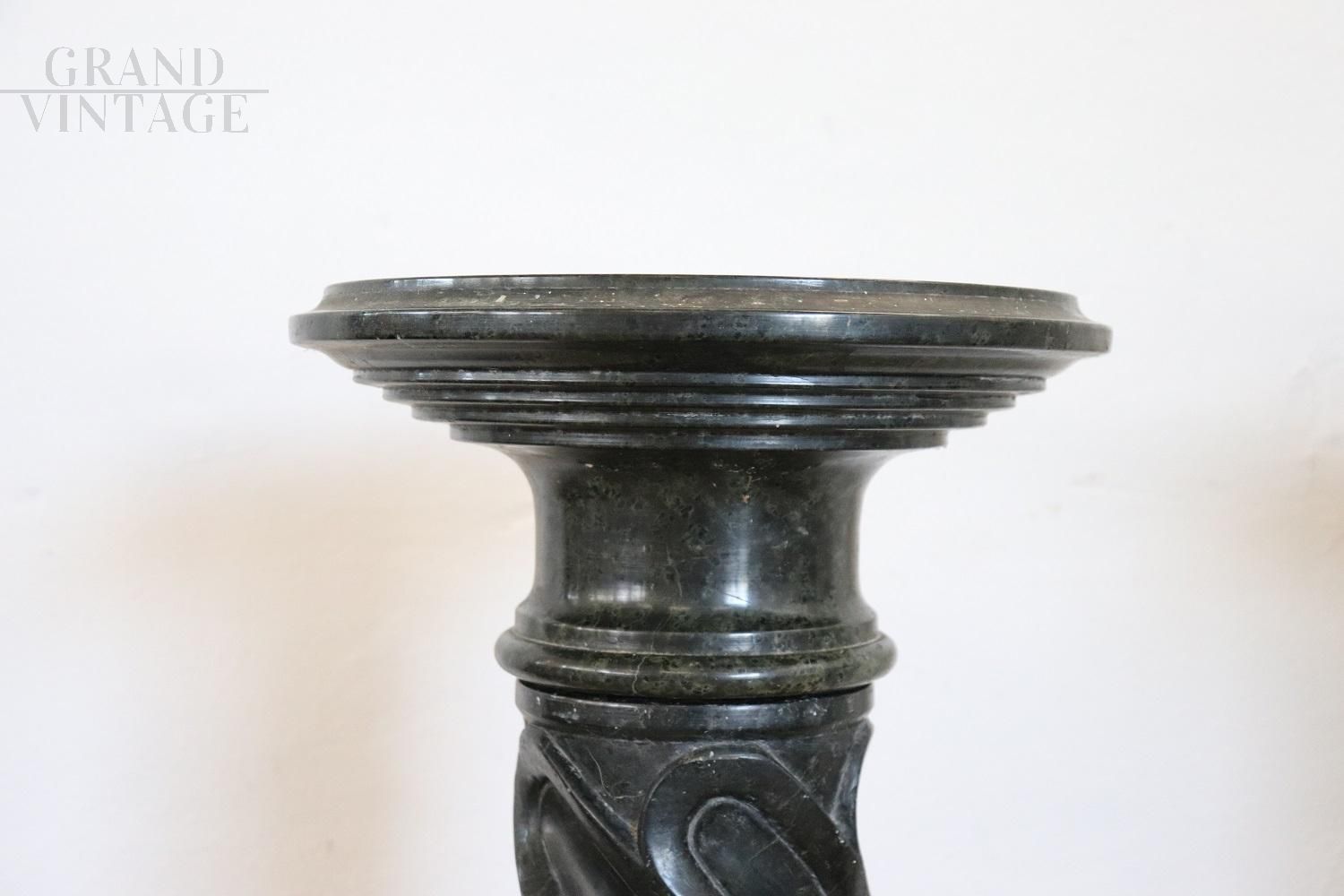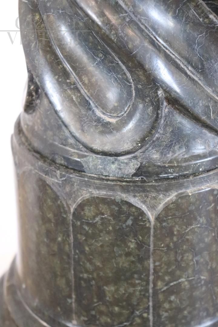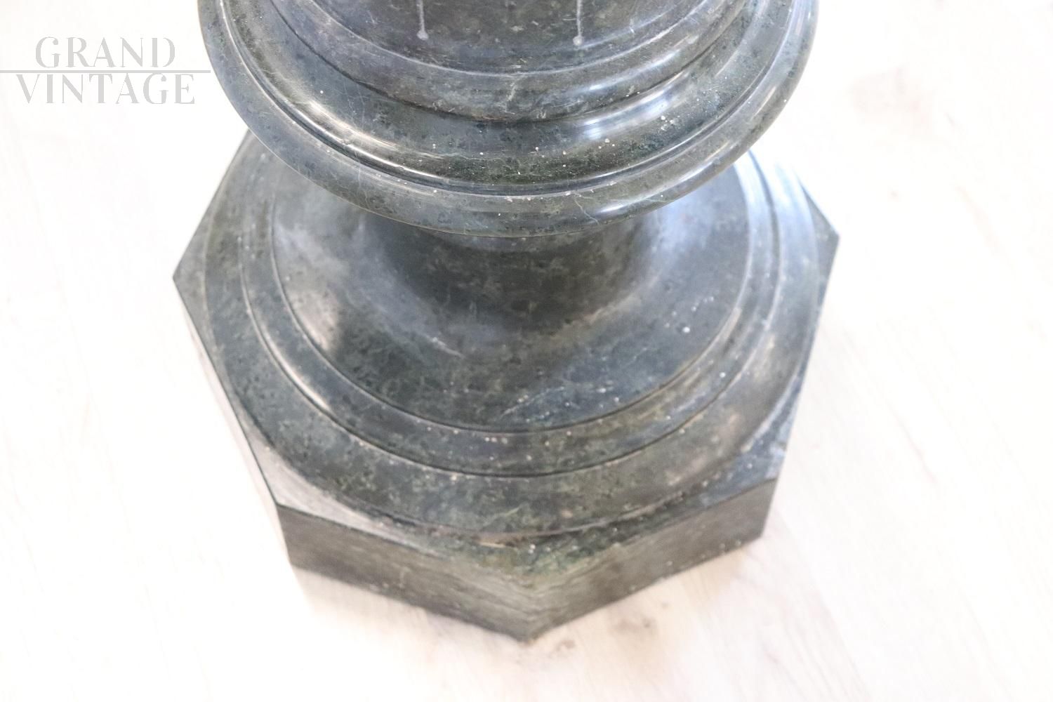Majestic ntique column of the late nineteenth century made of precious Italian marble in dark green shades. The body is sculpted in a twist. Its dimensions allow you to exhibit sculptures, large vases or busts. Small signs of wear on the base, see detailed photos. Great price negotiable.