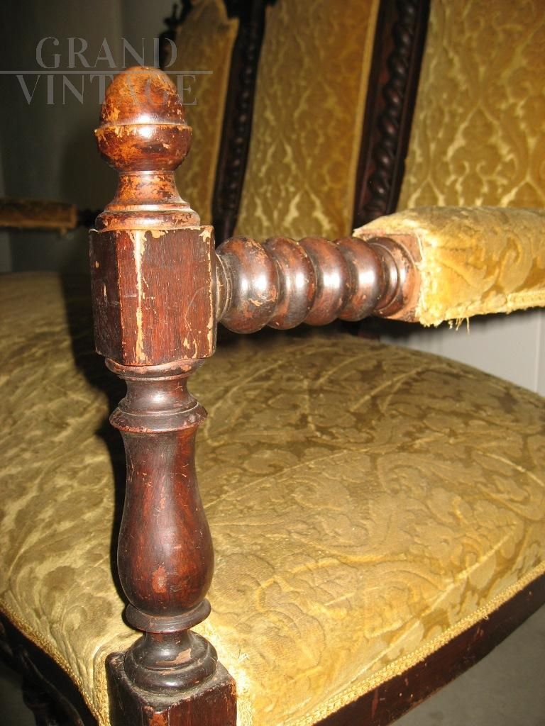 Antique living room in walnut wood from the Belle Epoque period to be restored.