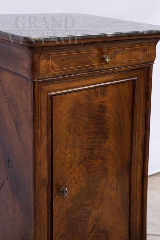 Antique Louis Philippe bedside table in mahogany feather with marble top
