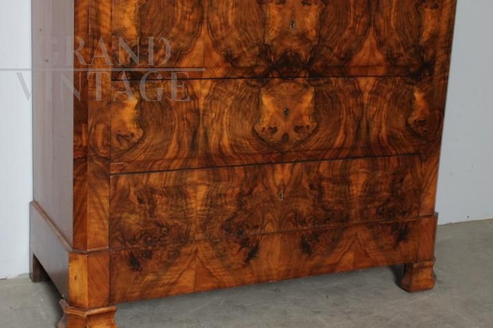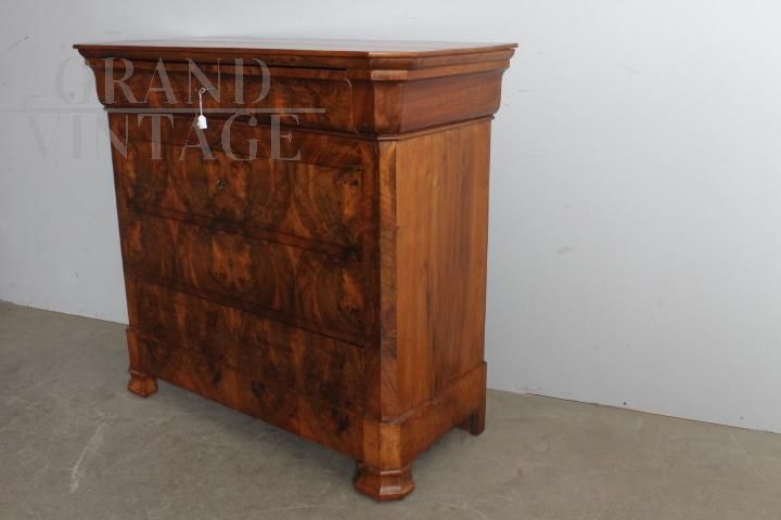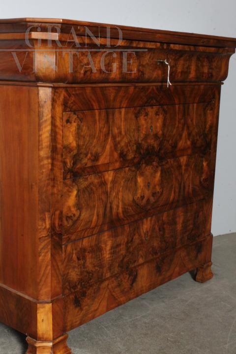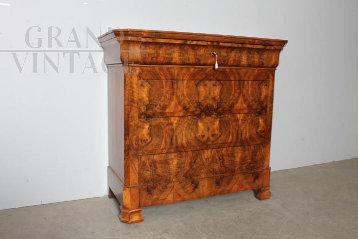 Antique Louis Philippe Capuchin chest of drawers in walnut briar