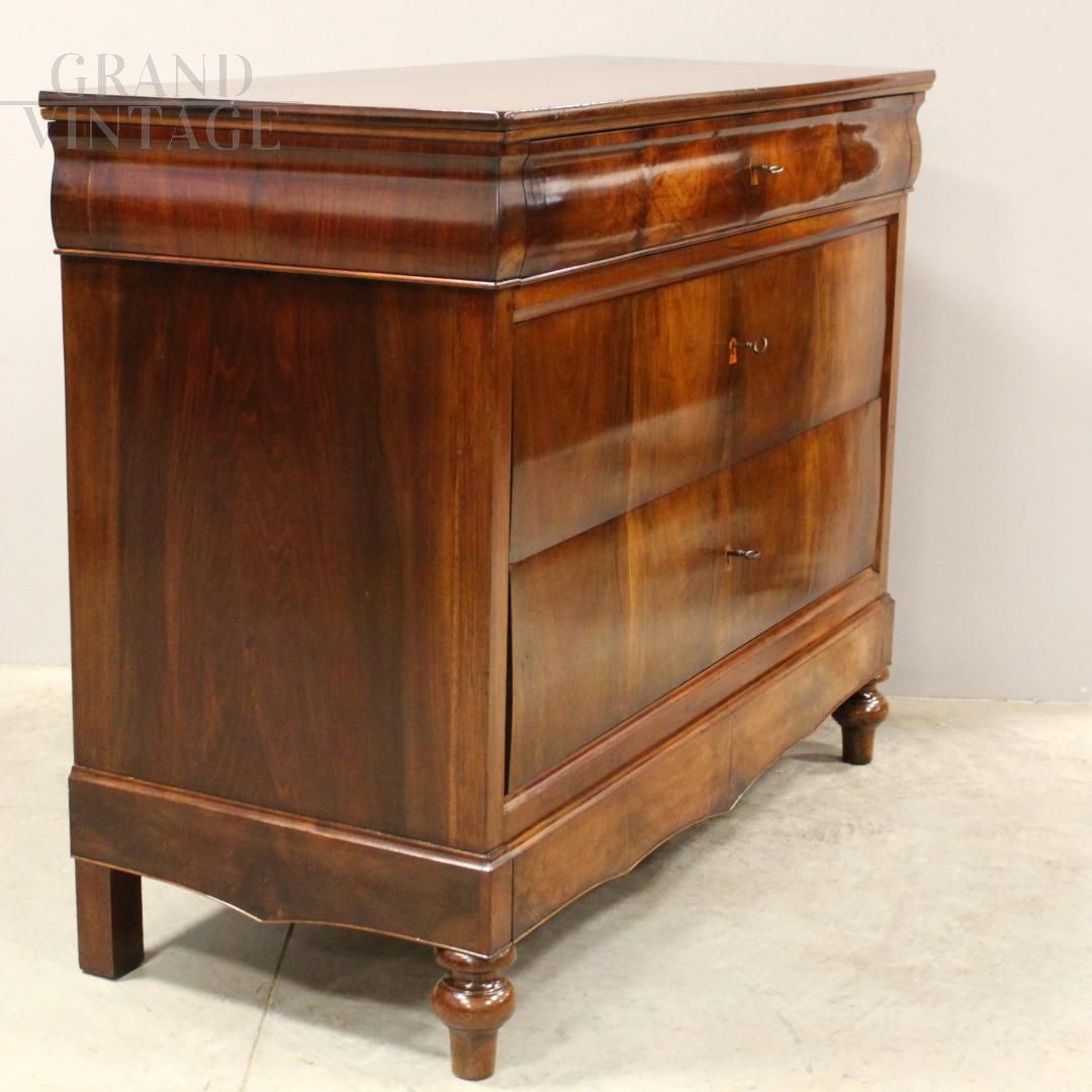 Antique Louis Philippe capuchin chest of drawers in walnut, Emilia - Italy 19th century