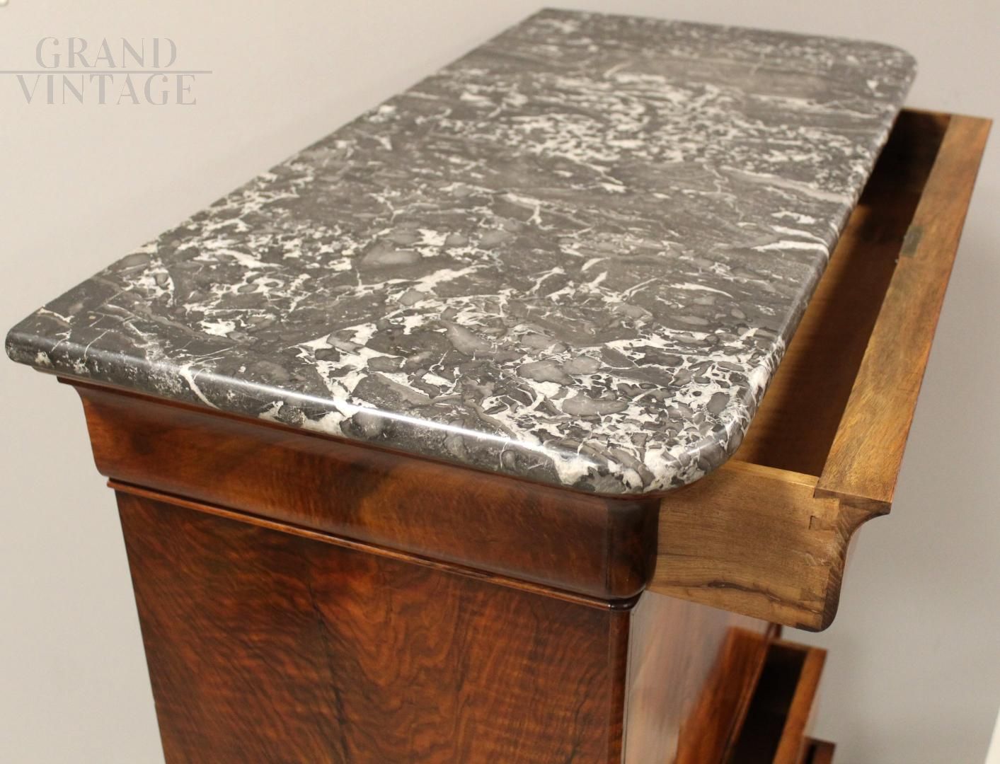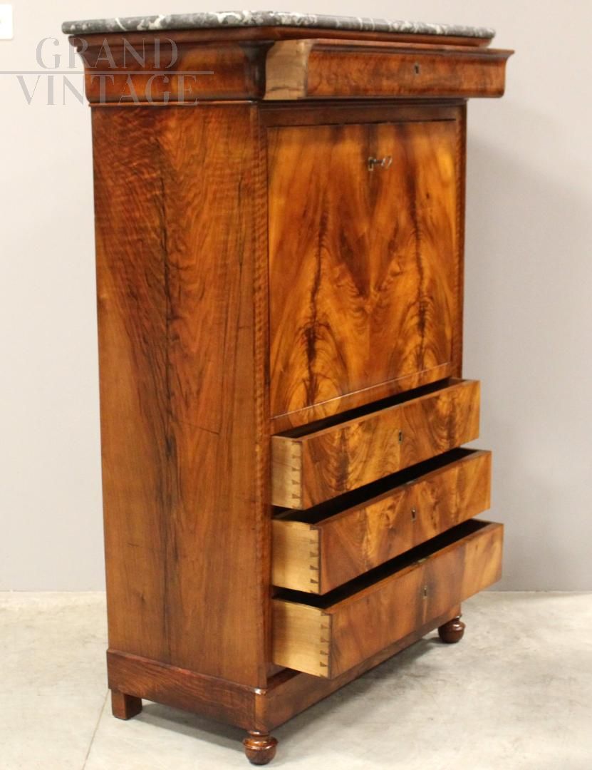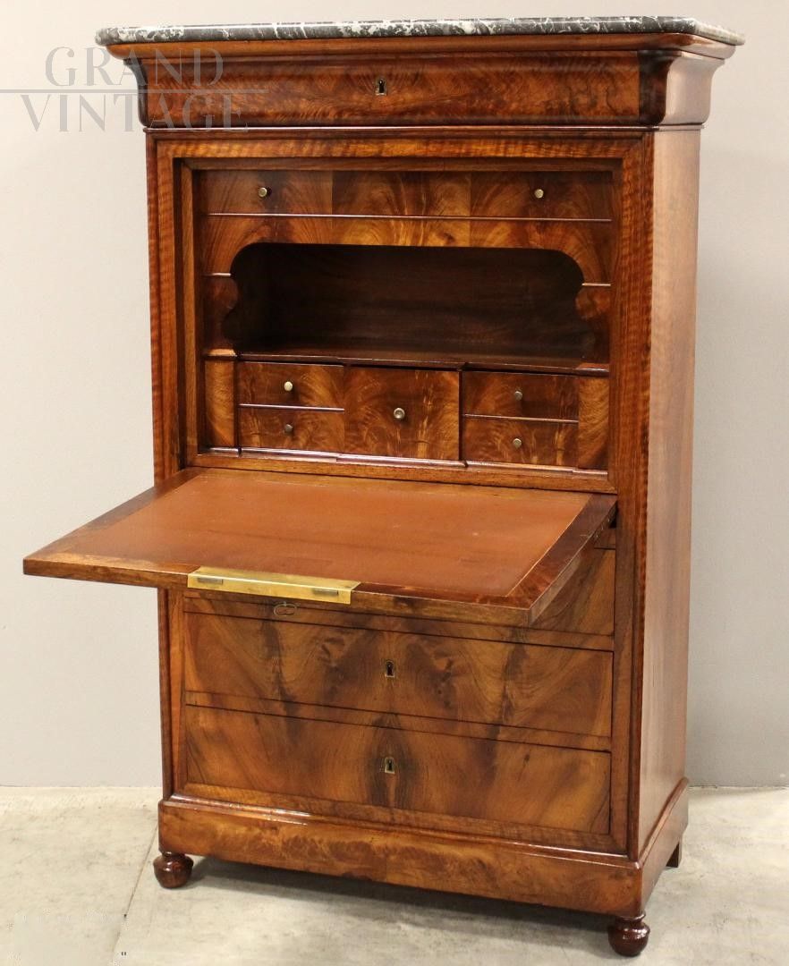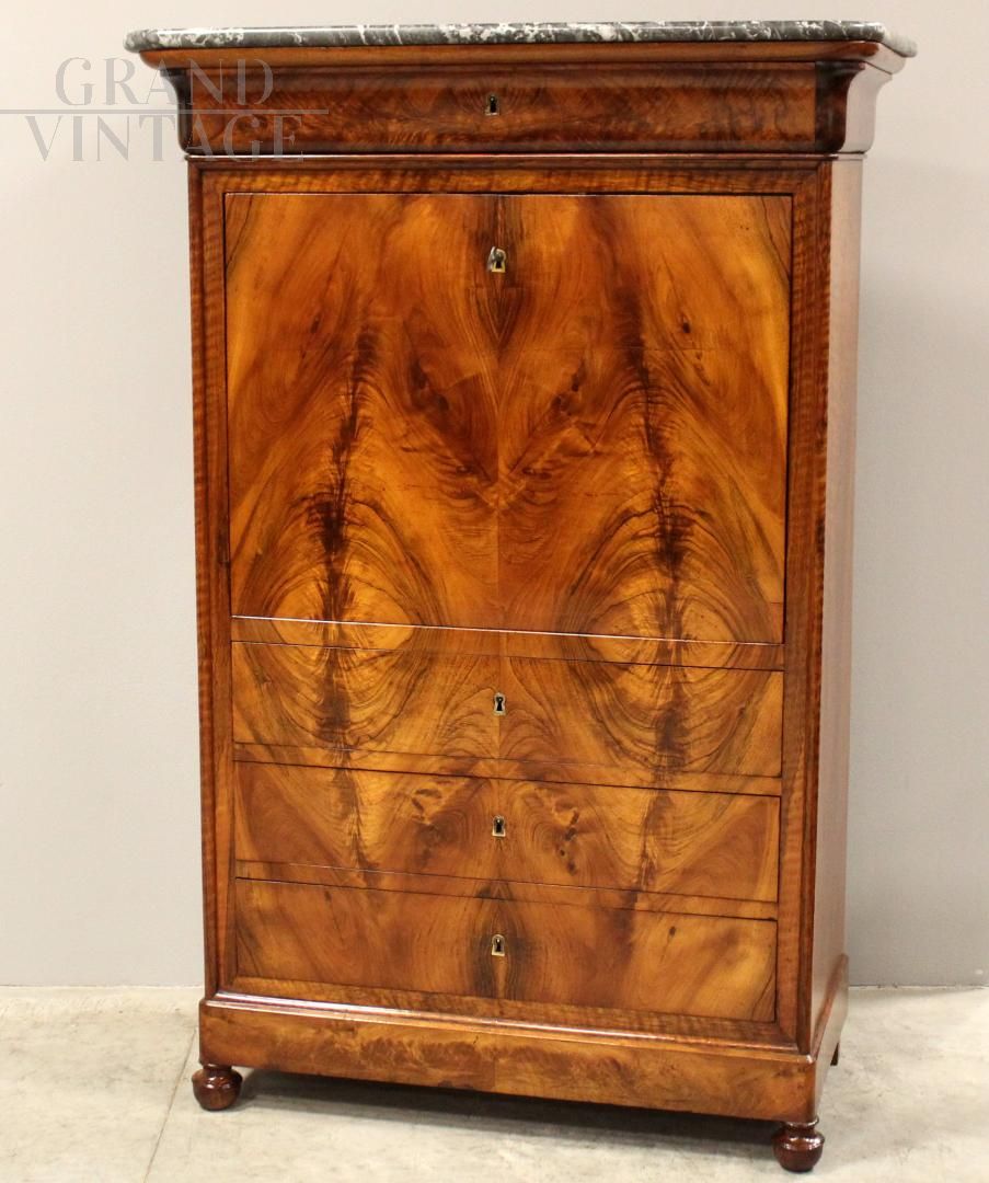 Louis Philippe antique capuchin secretaire in solid walnut and walnut briar veneer, with marble top, mid 19th century - Louis Philippe.