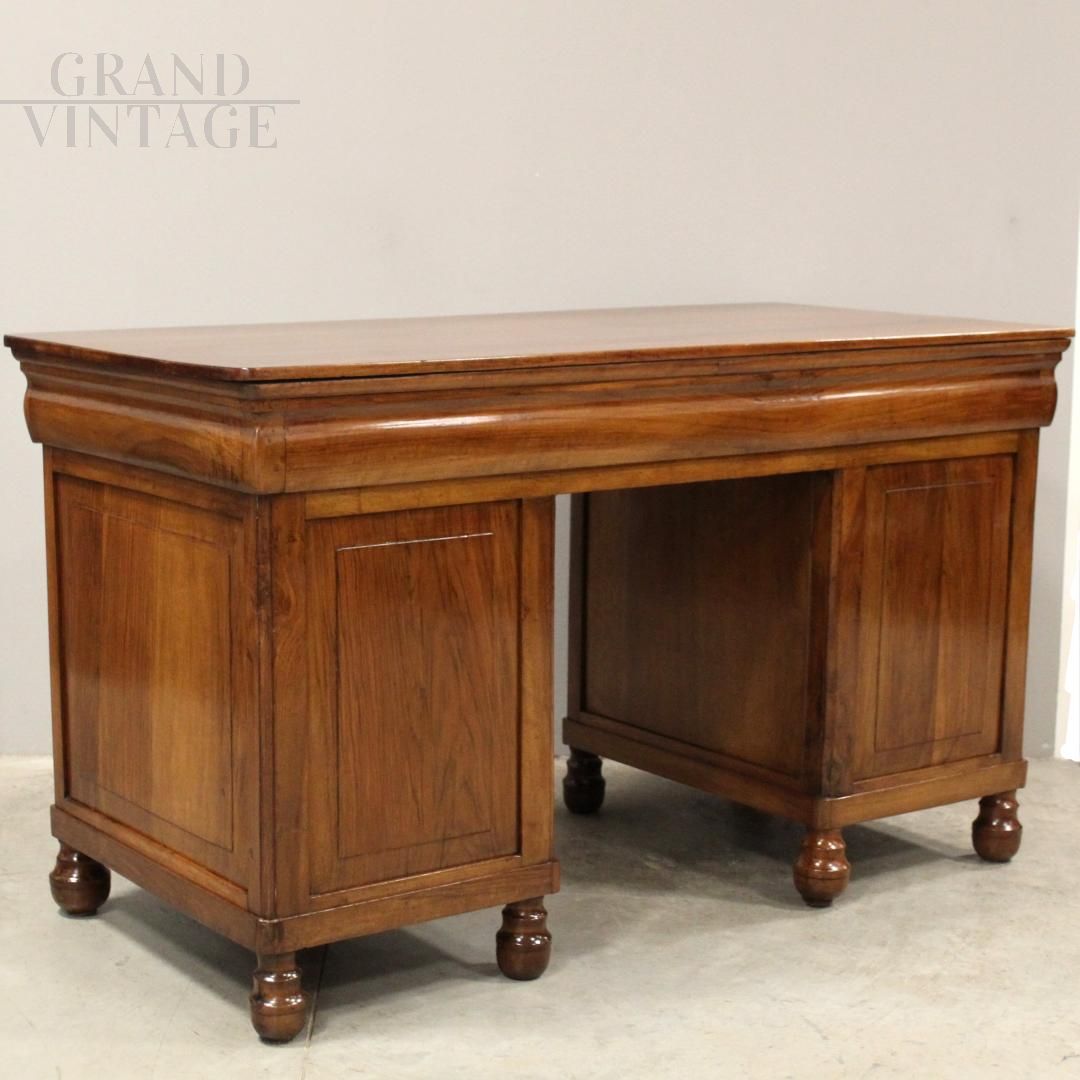Antique Louis Philippe desk in walnut with drawers, 19th century Italy