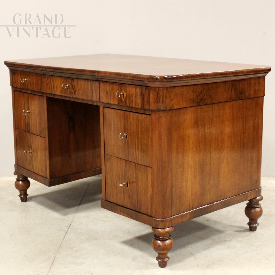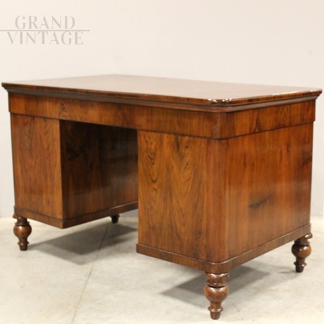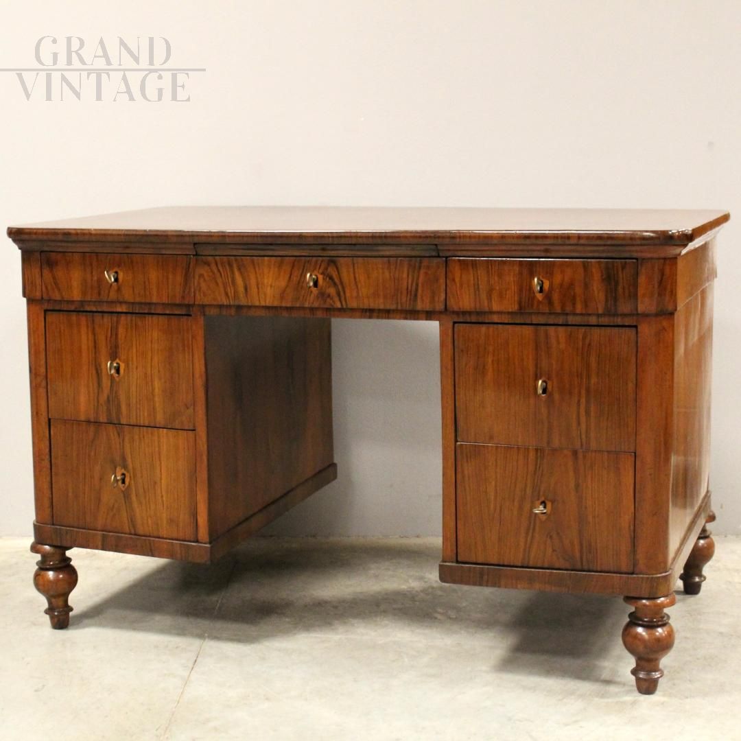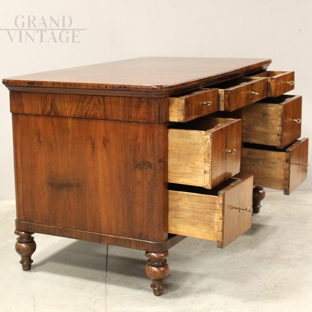Antique Louis Philippe desk in walnut with large drawers, 19th century Italy