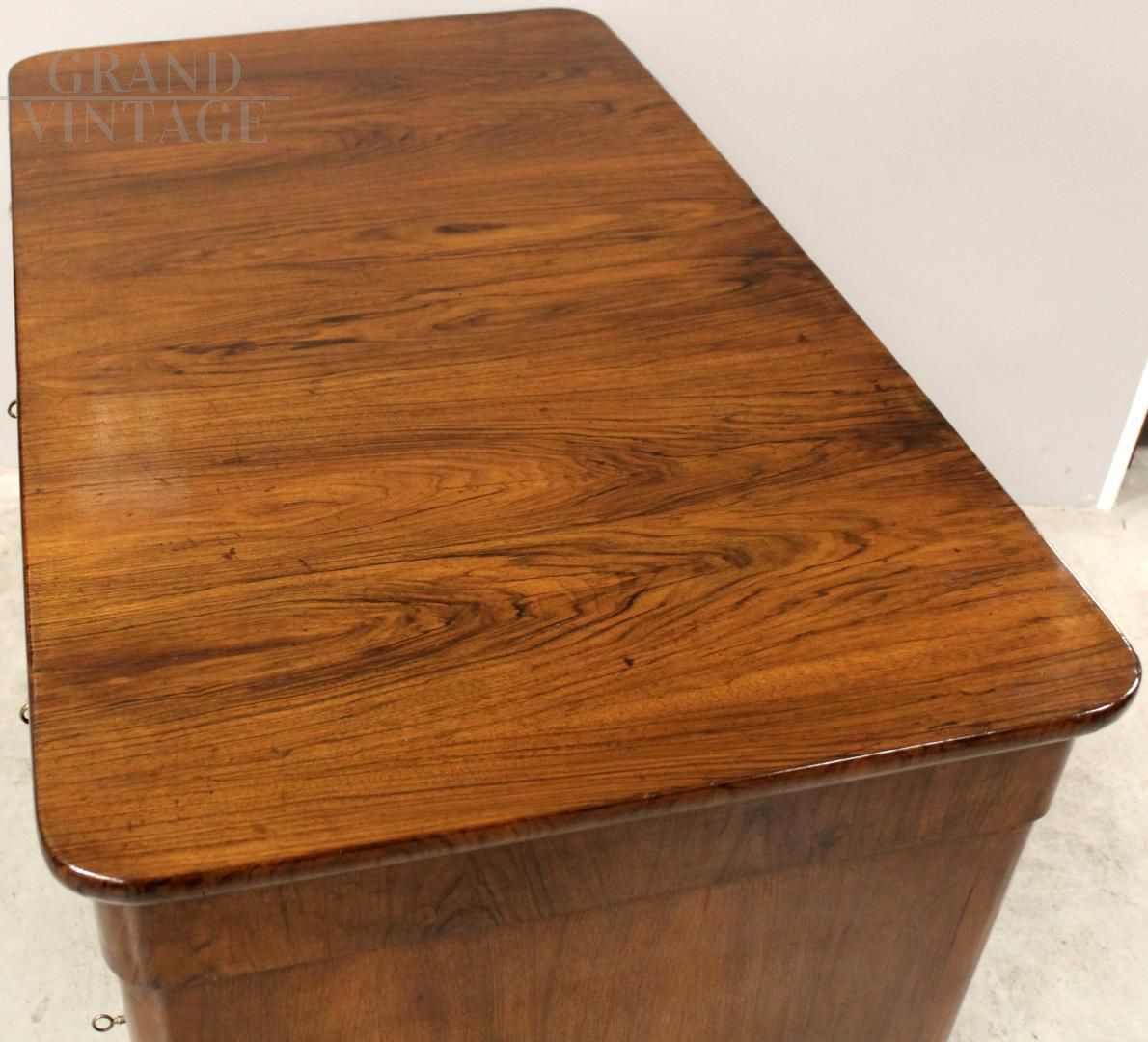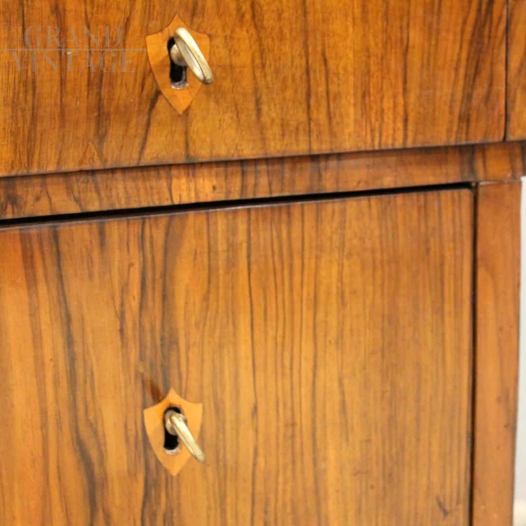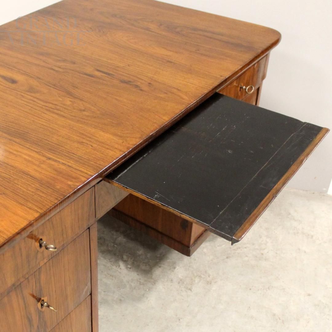 Antique Louis Philippe desk in walnut with large drawers, 19th century Italy
