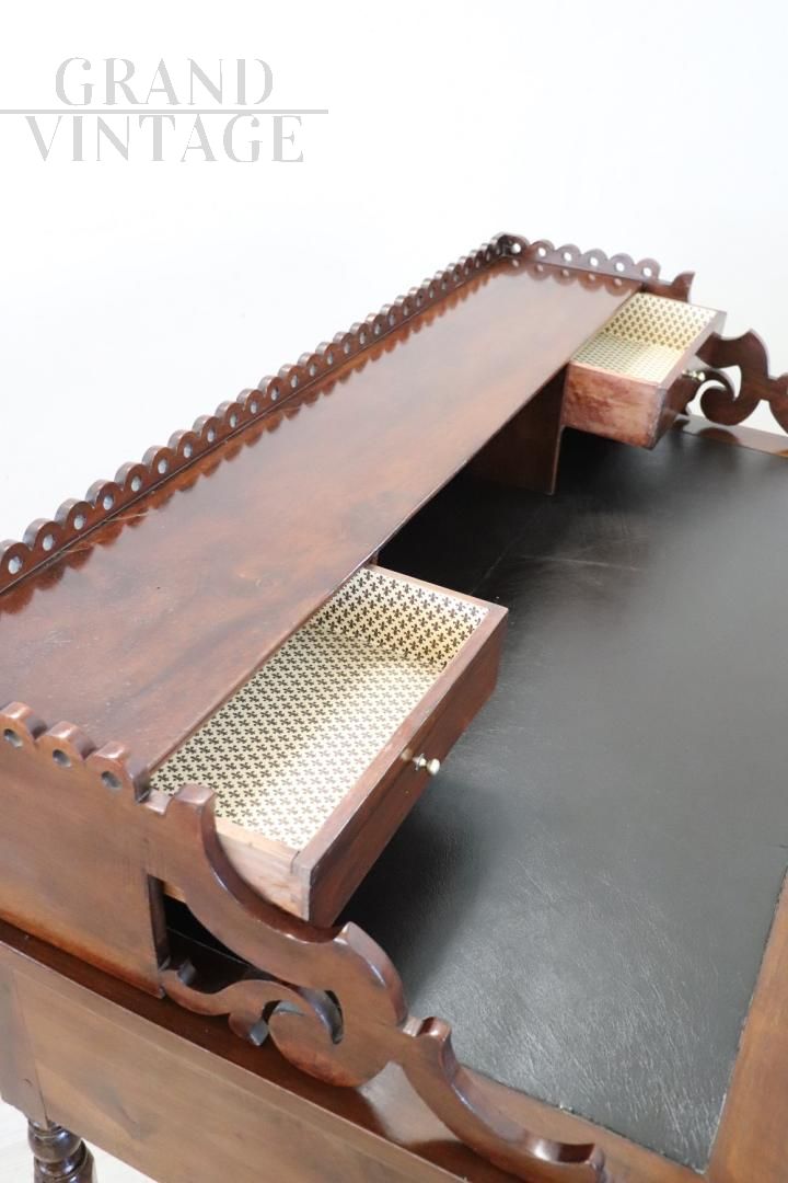 Antique Louis Philippe ladies' desk with upstand in solid walnut, 19th century