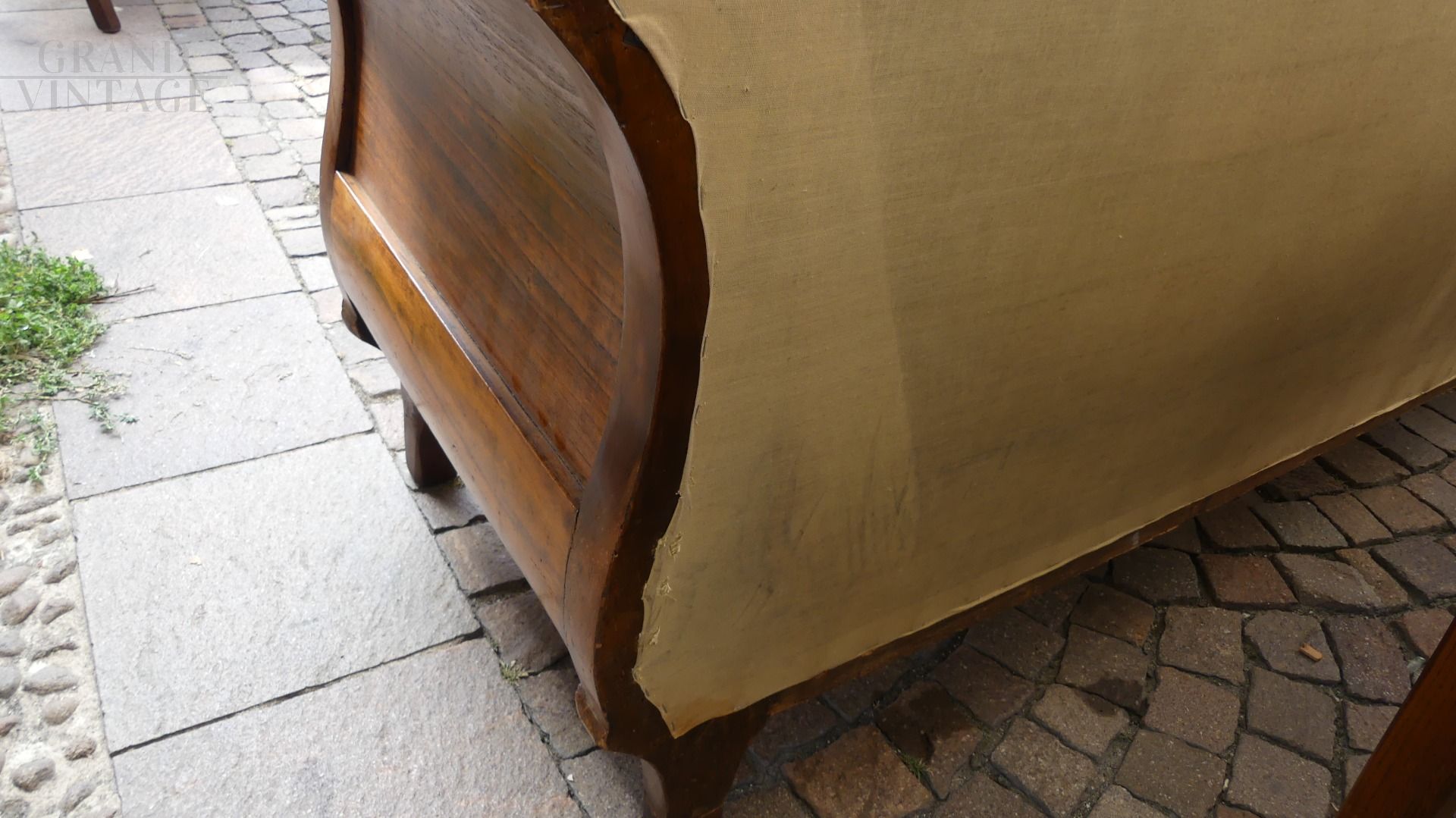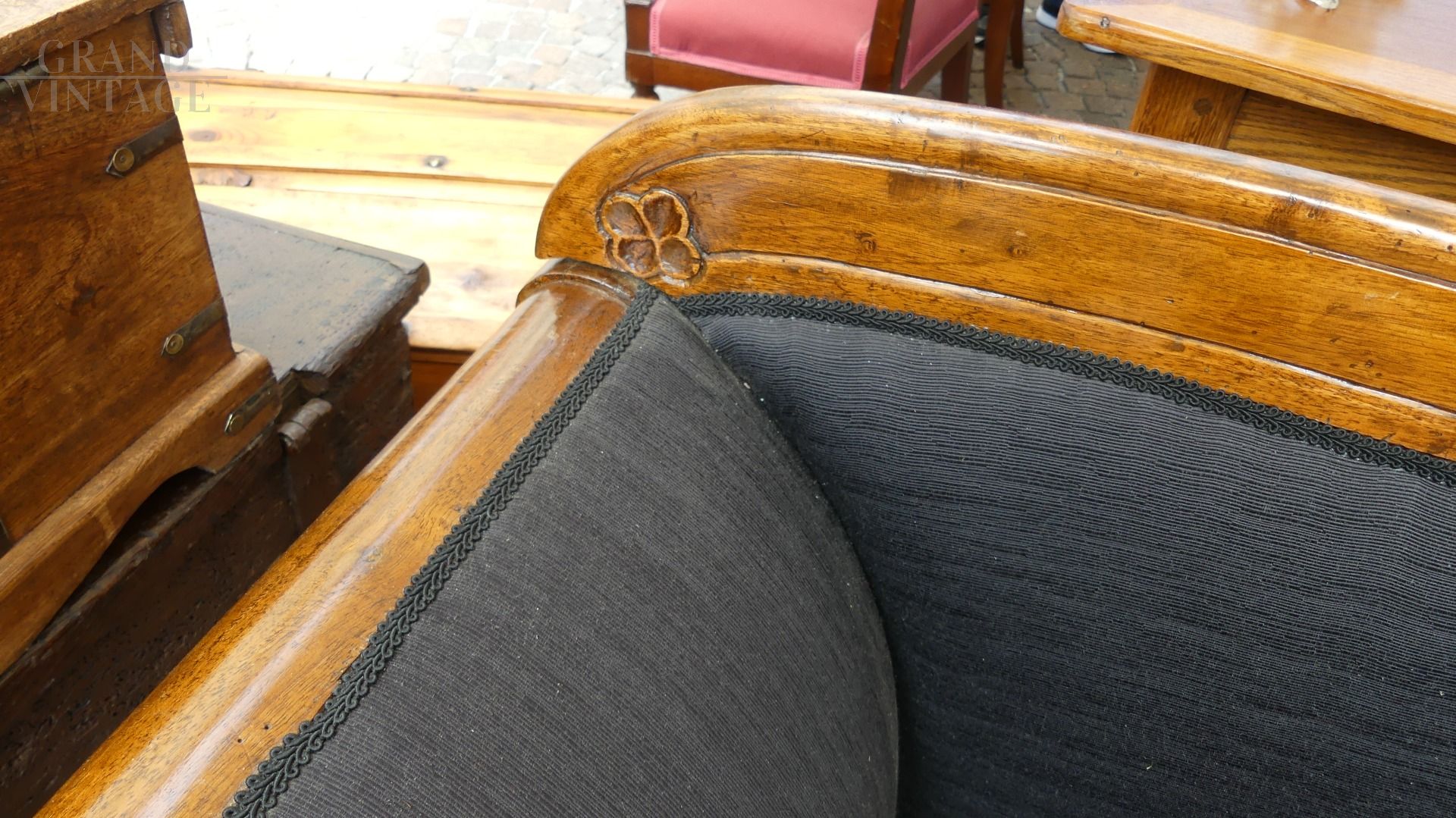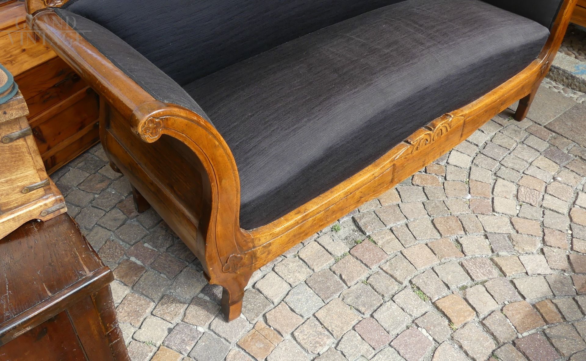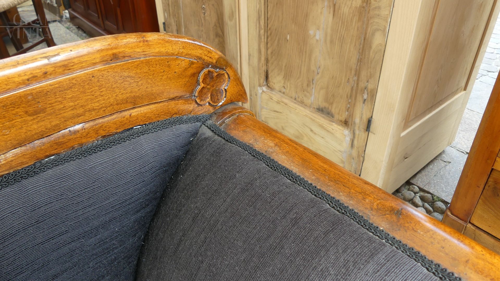 Antique sofa from the Louis Philippe period, second half of the 1800s, in finely carved walnut, restored.