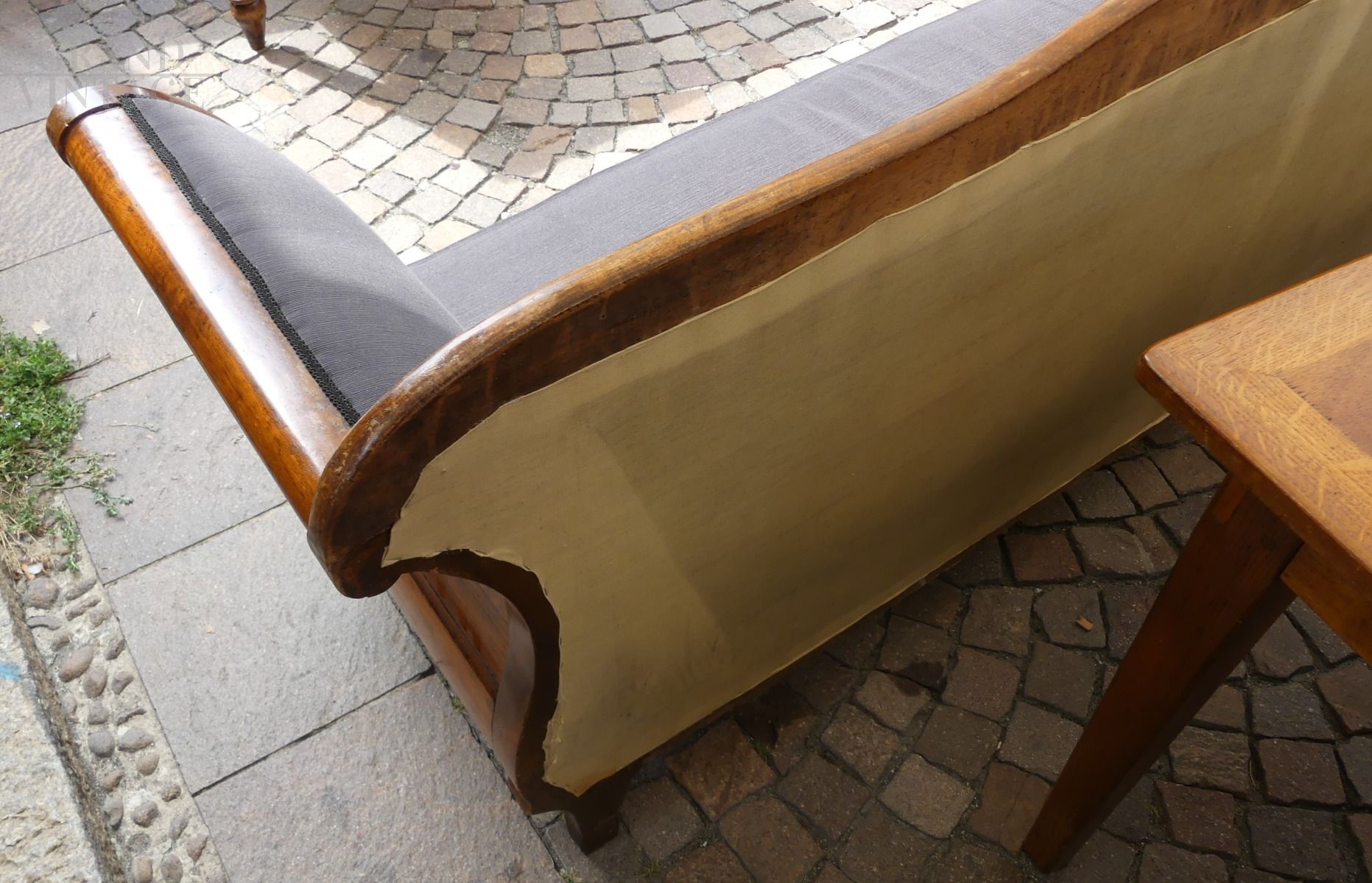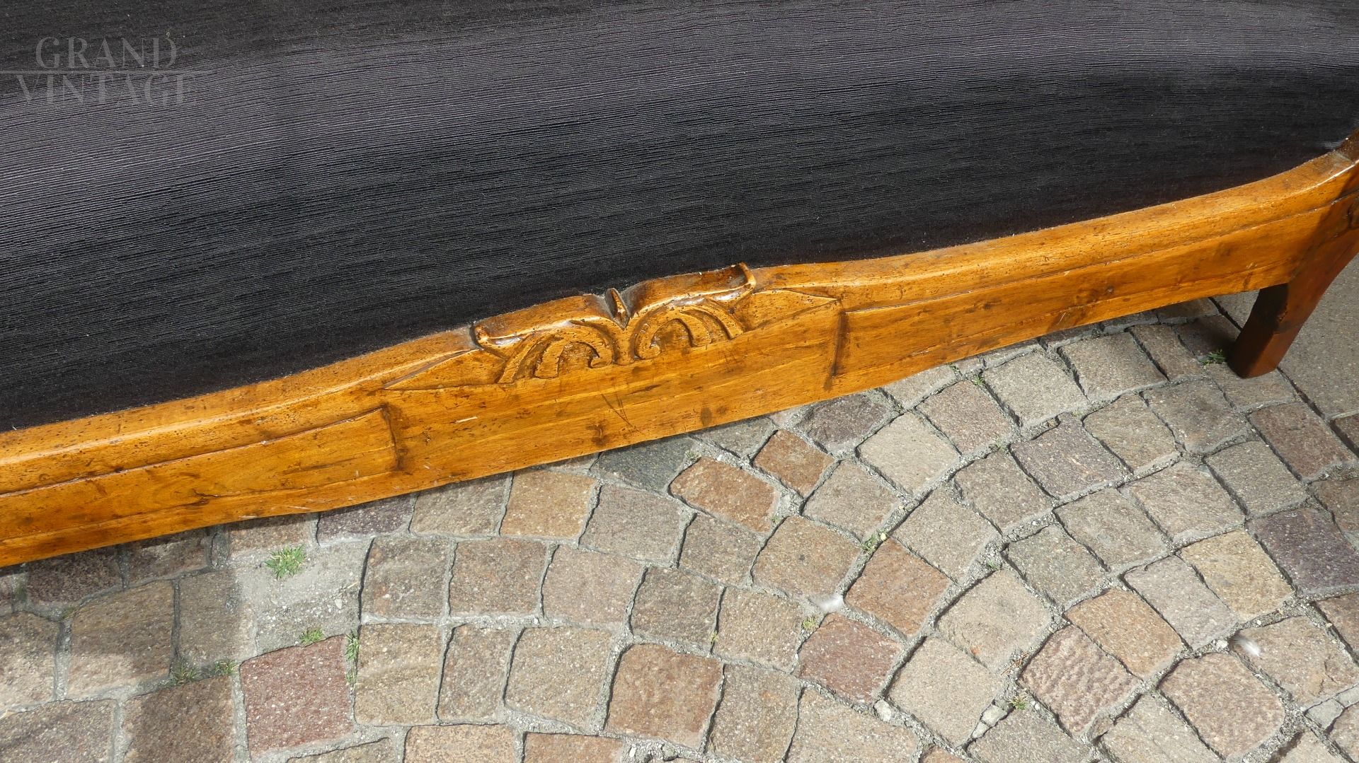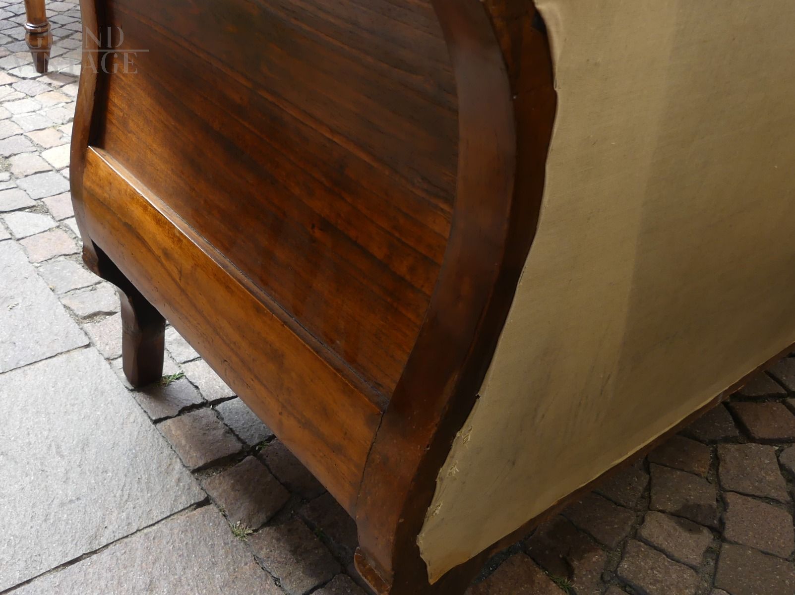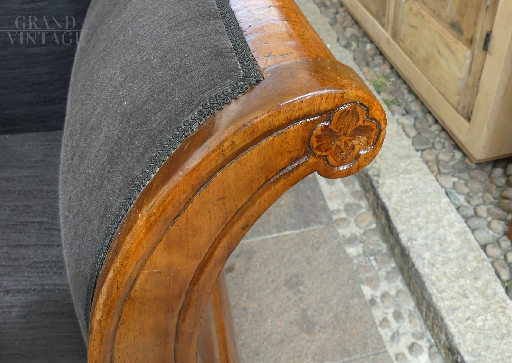 Antique sofa from the Louis Philippe period, second half of the 1800s, in finely carved walnut, restored.