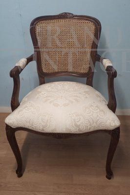 Antique Louis XV style armchair with Vienna straw back, Italy 1950s