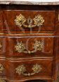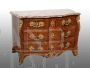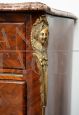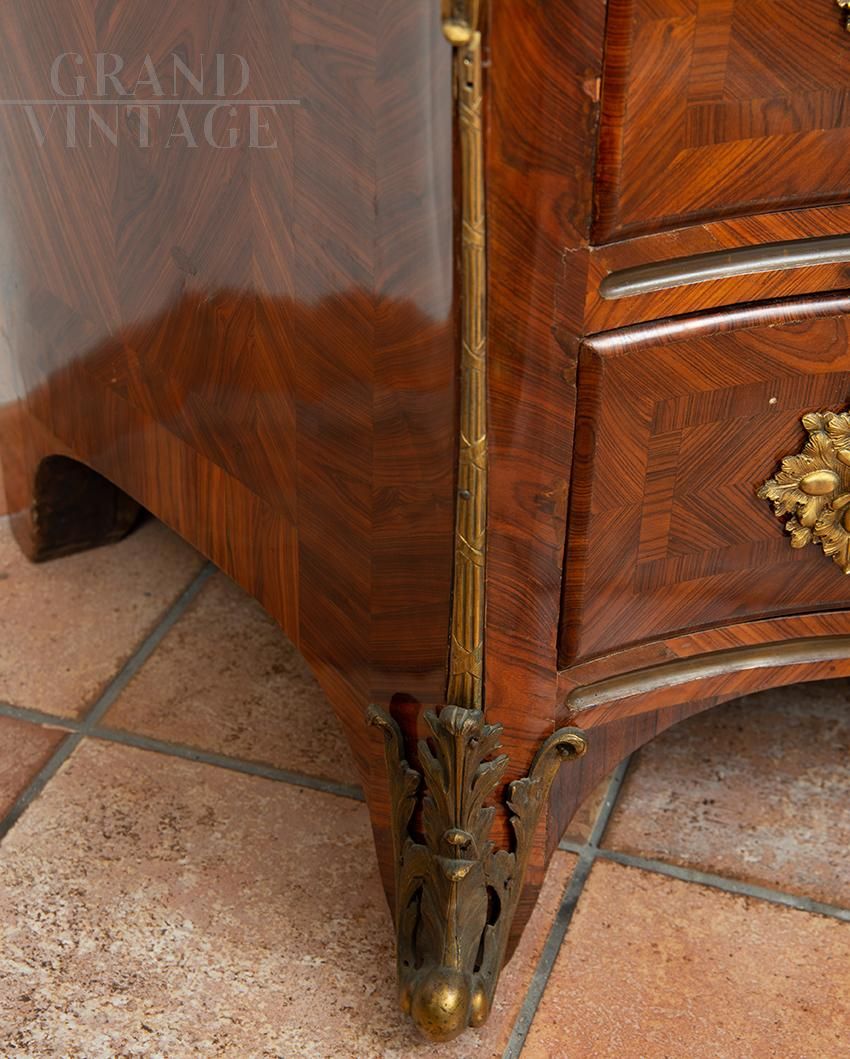 Antique Louis XV Tombeau chest of drawers in fine exotic wood with marble top