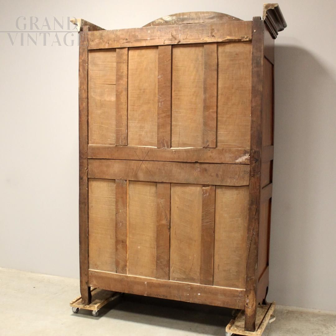 Antique Louis XV wardrobe or cupboard in walnut and cherry with carvings, 18th century