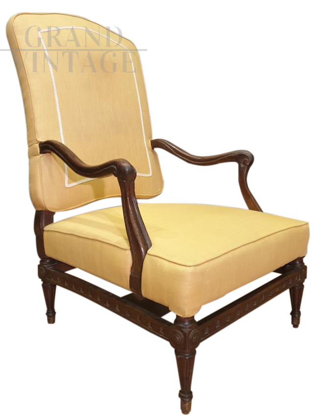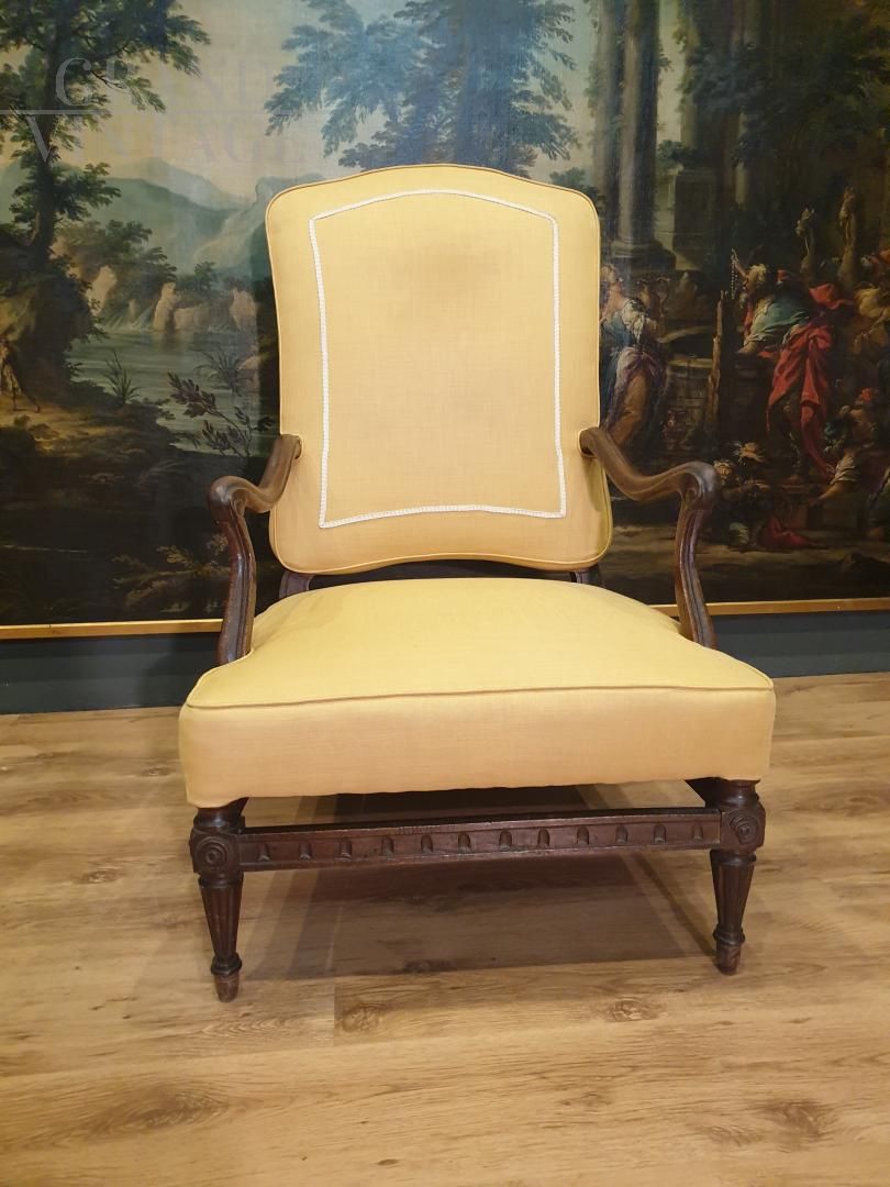 Of great charm and quality, the Louis XVI Venetian style armchair has a seat of 39 cm in height and is still in good general condition for the period, some natural signs of use and some restoration undergone over time, by the Venetian school. Comes from a private collection. The measure is 70 x 70 x 110 cm high.
