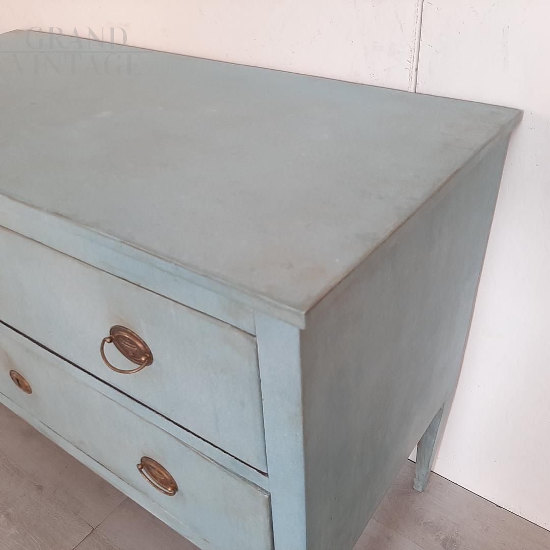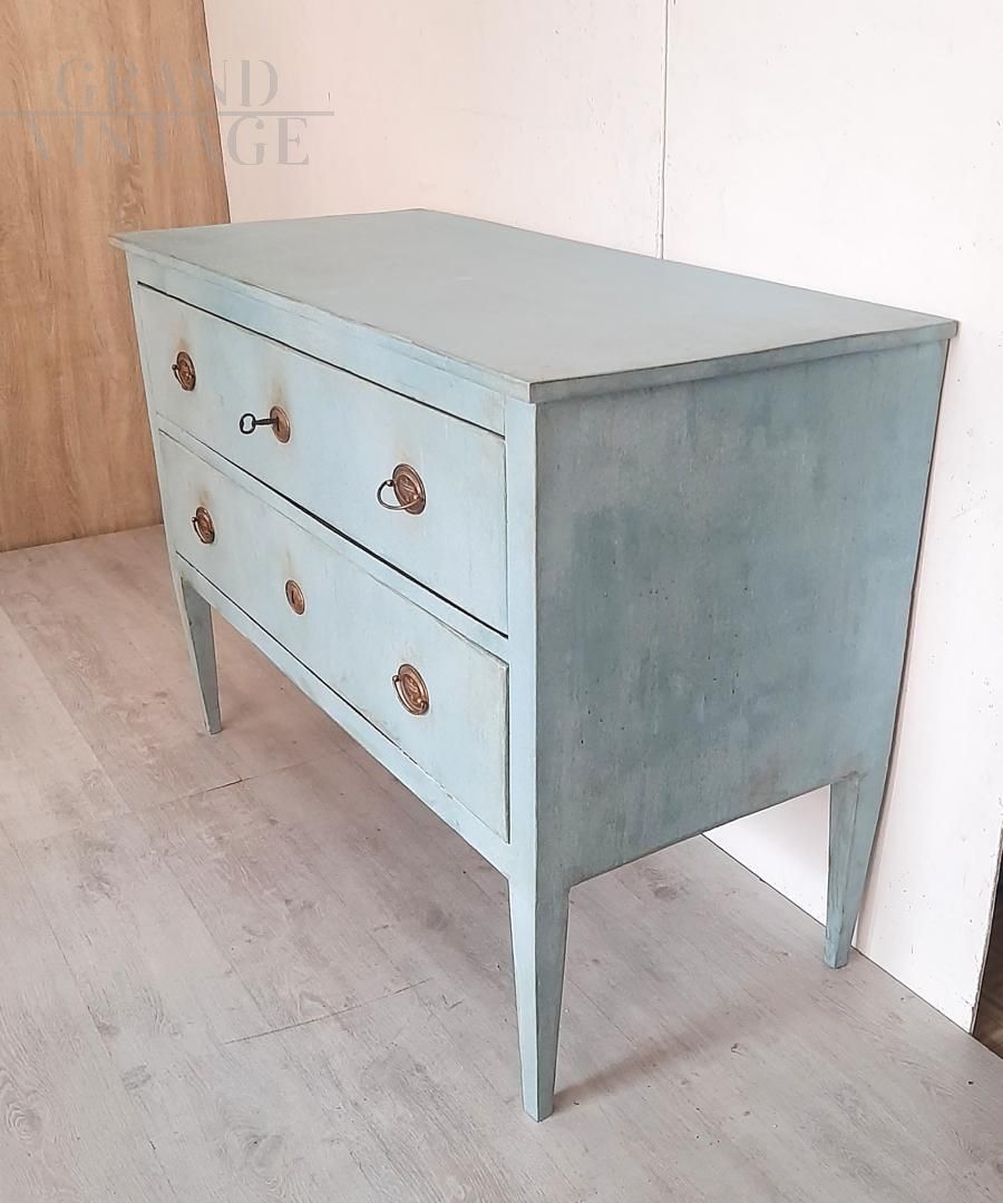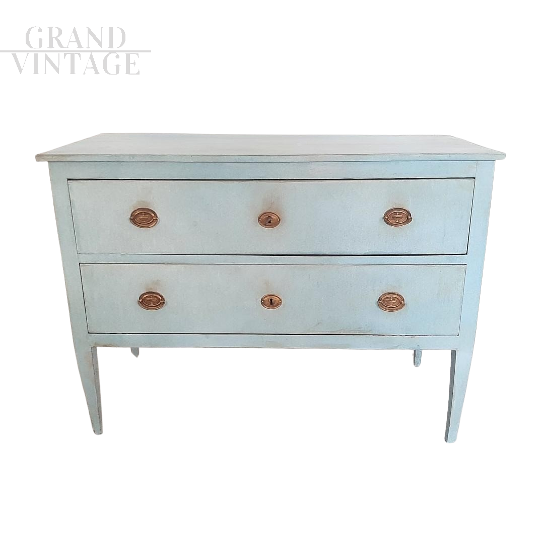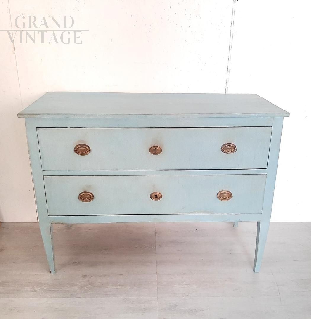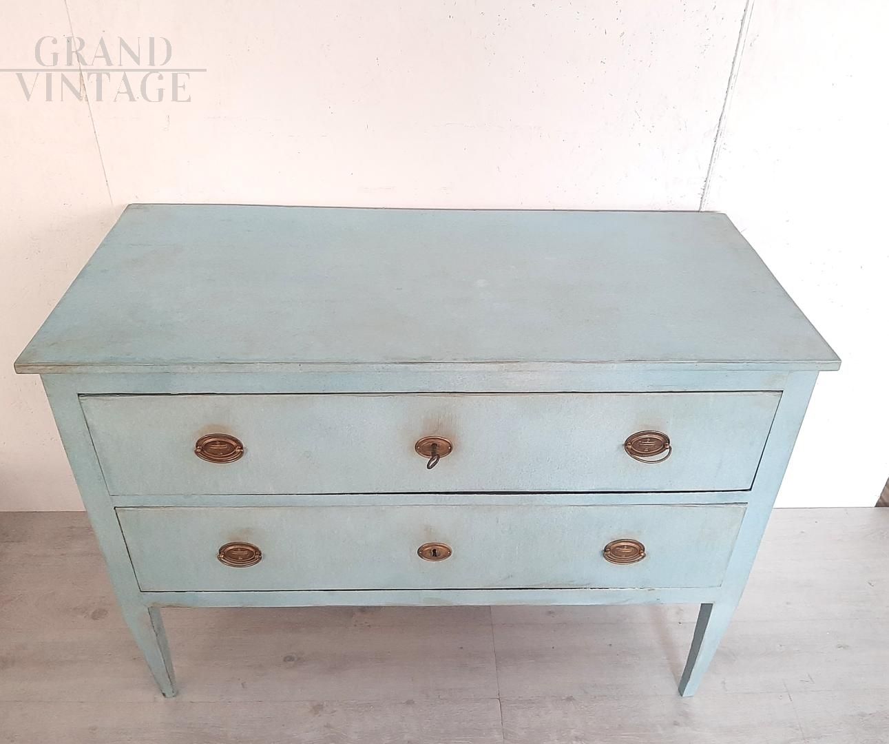 Antique Louis XVI chest of drawers in light blue lacquered wood, late 18th century