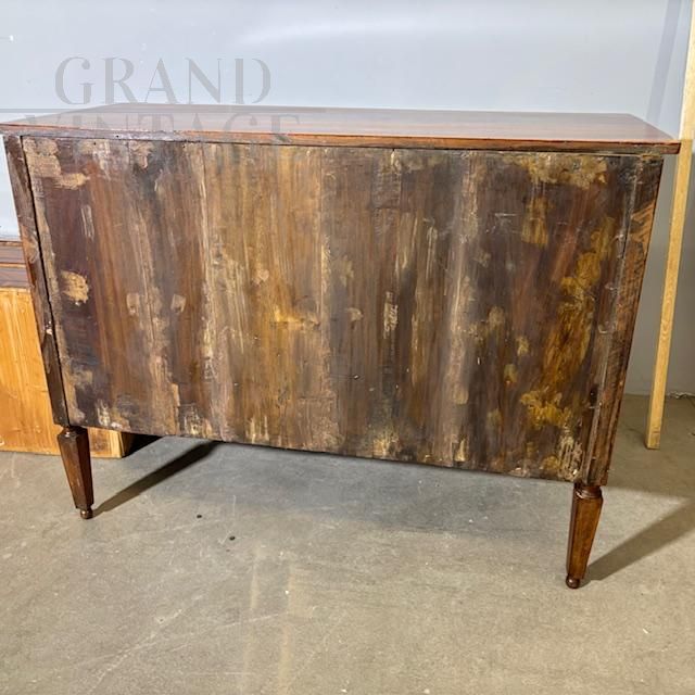 Antique Louis XVI chest of drawers with magnificent inlays and pin legs, Italy - Piacenza 1770. Restored.