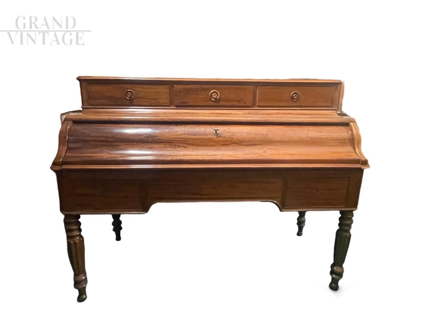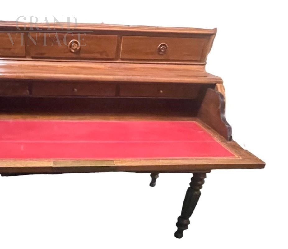 Antique French mahogany drop front desk with drawers, from the mid-19th century, in excellent condition.