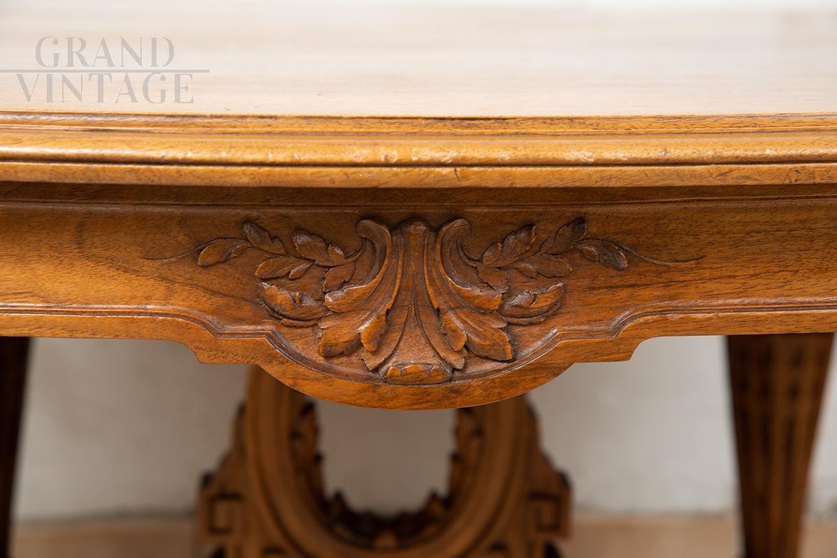 Antique Napoleon III carved table in solid walnut, 19th century