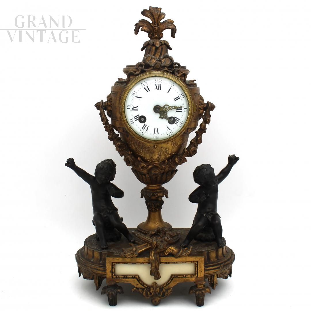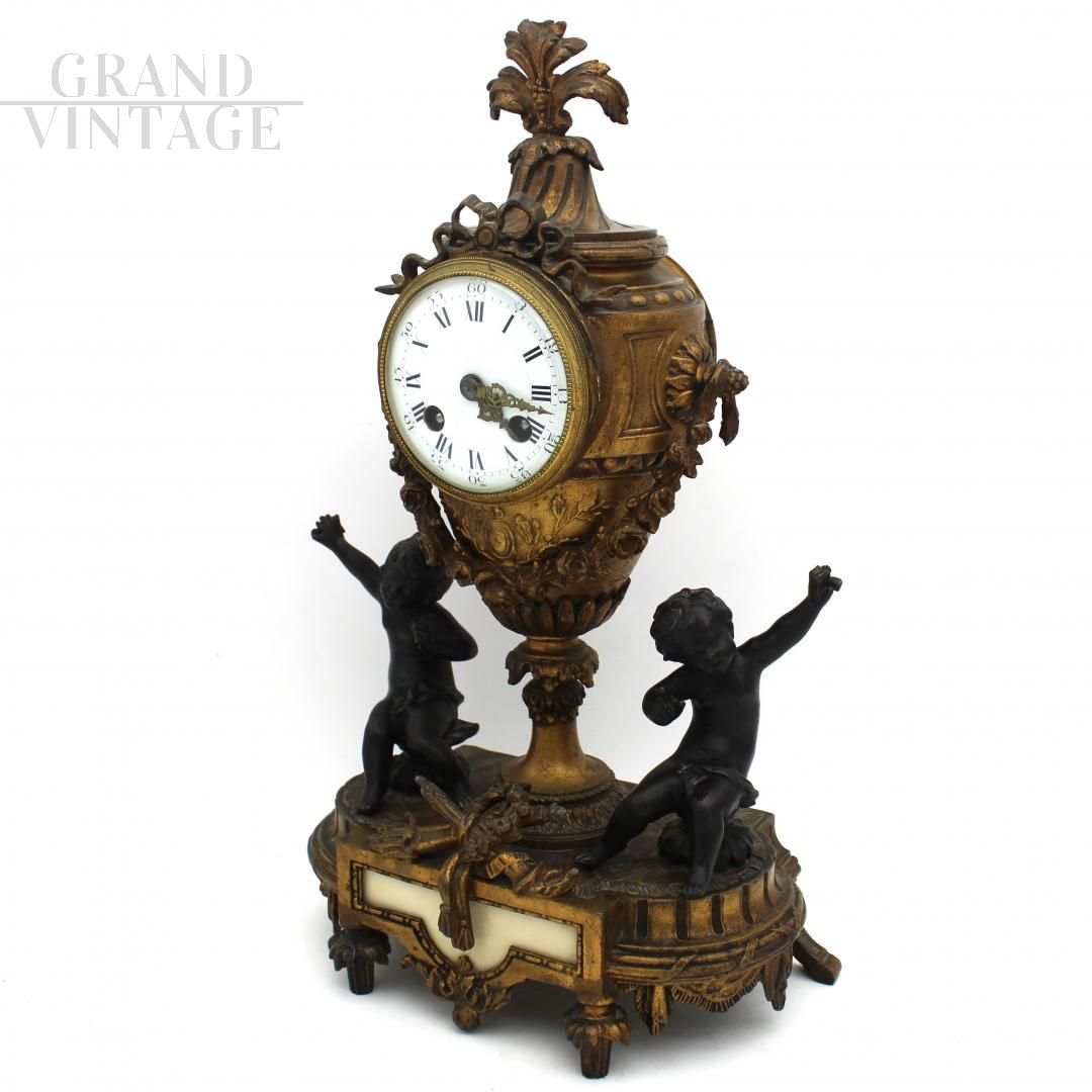 Napoleon III clock in gilded bronze and patinated bronze, late 19th century - Napoleon III, from France.
