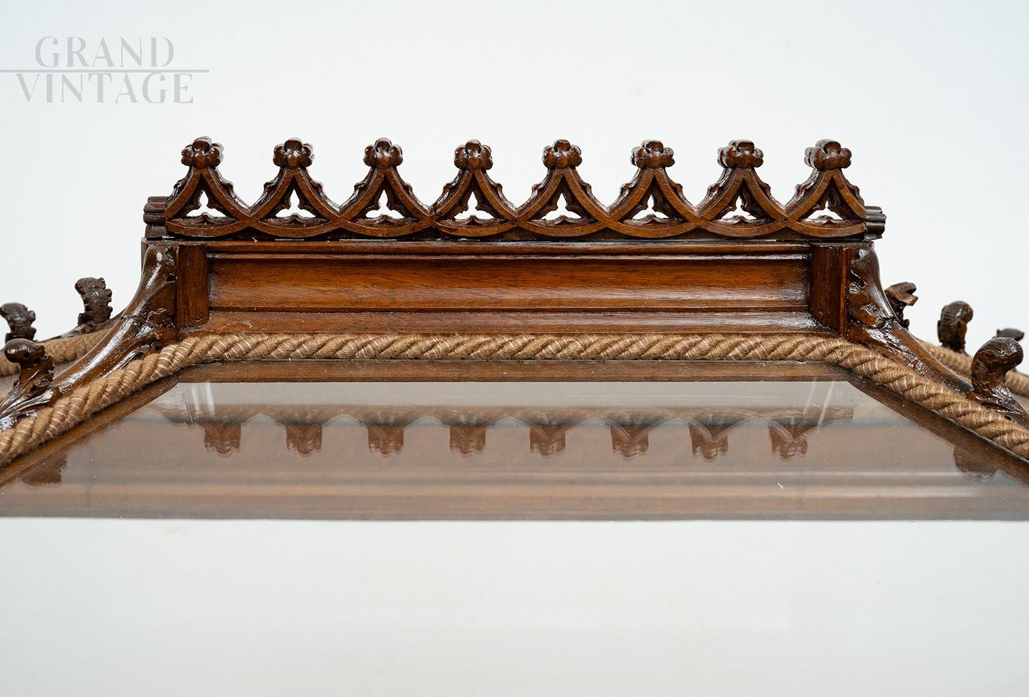 Antique neo-Gothic display case in solid walnut, Naples early 19th century