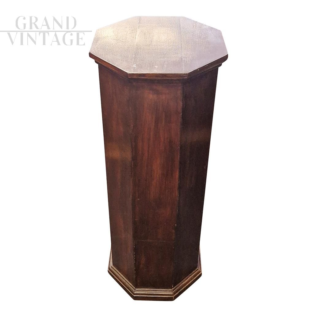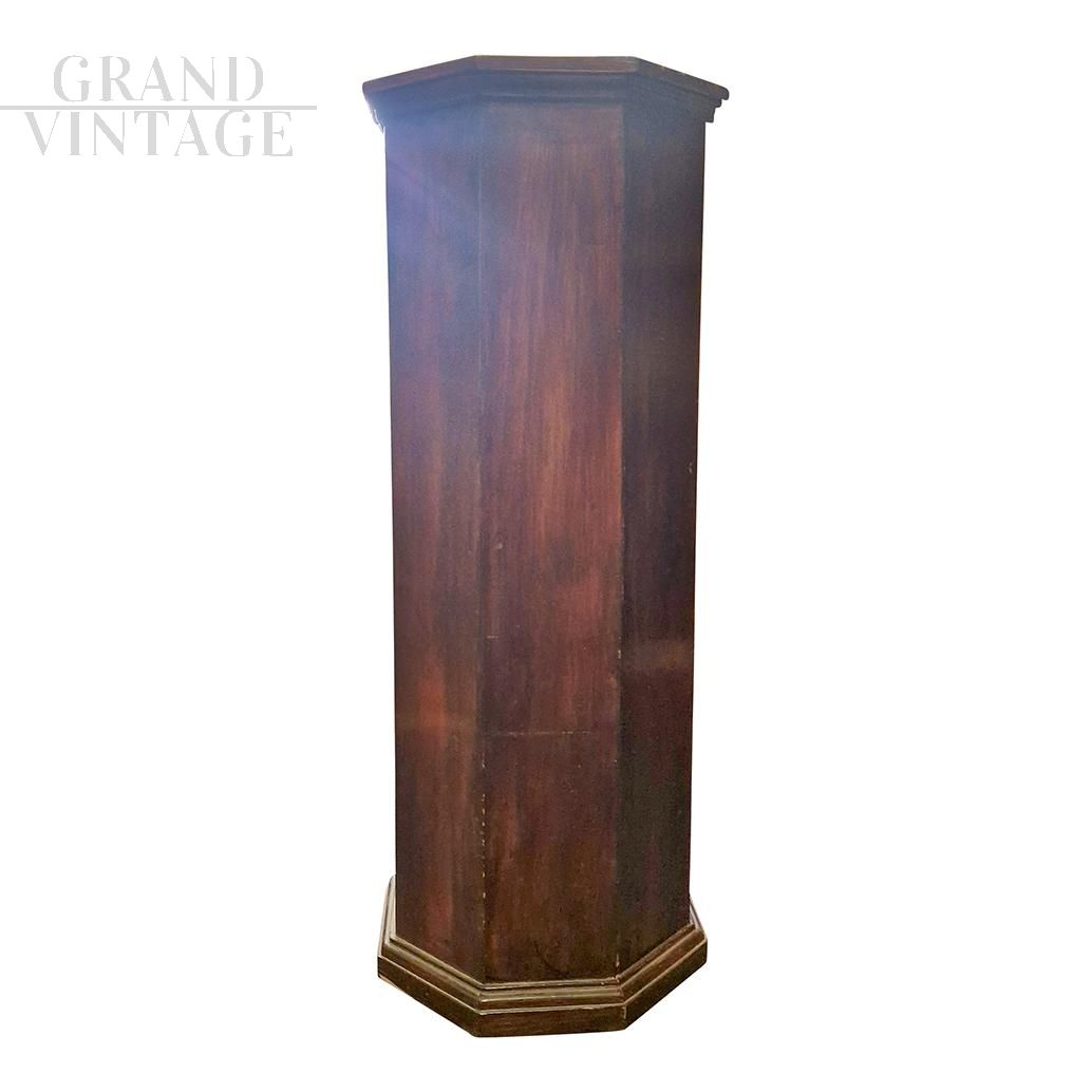 Antique octagonal column made of recycled antique walnut and walnut briar veneered with a thickness of 3 mm on solid fir wood, 19th century.