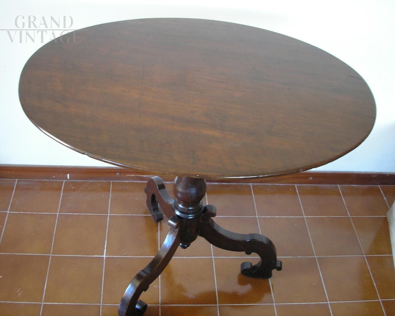 Oval table from the first half of the 18th century in Baroque style, in solid walnut, intact, in the first patina (only with cleaning of the top).