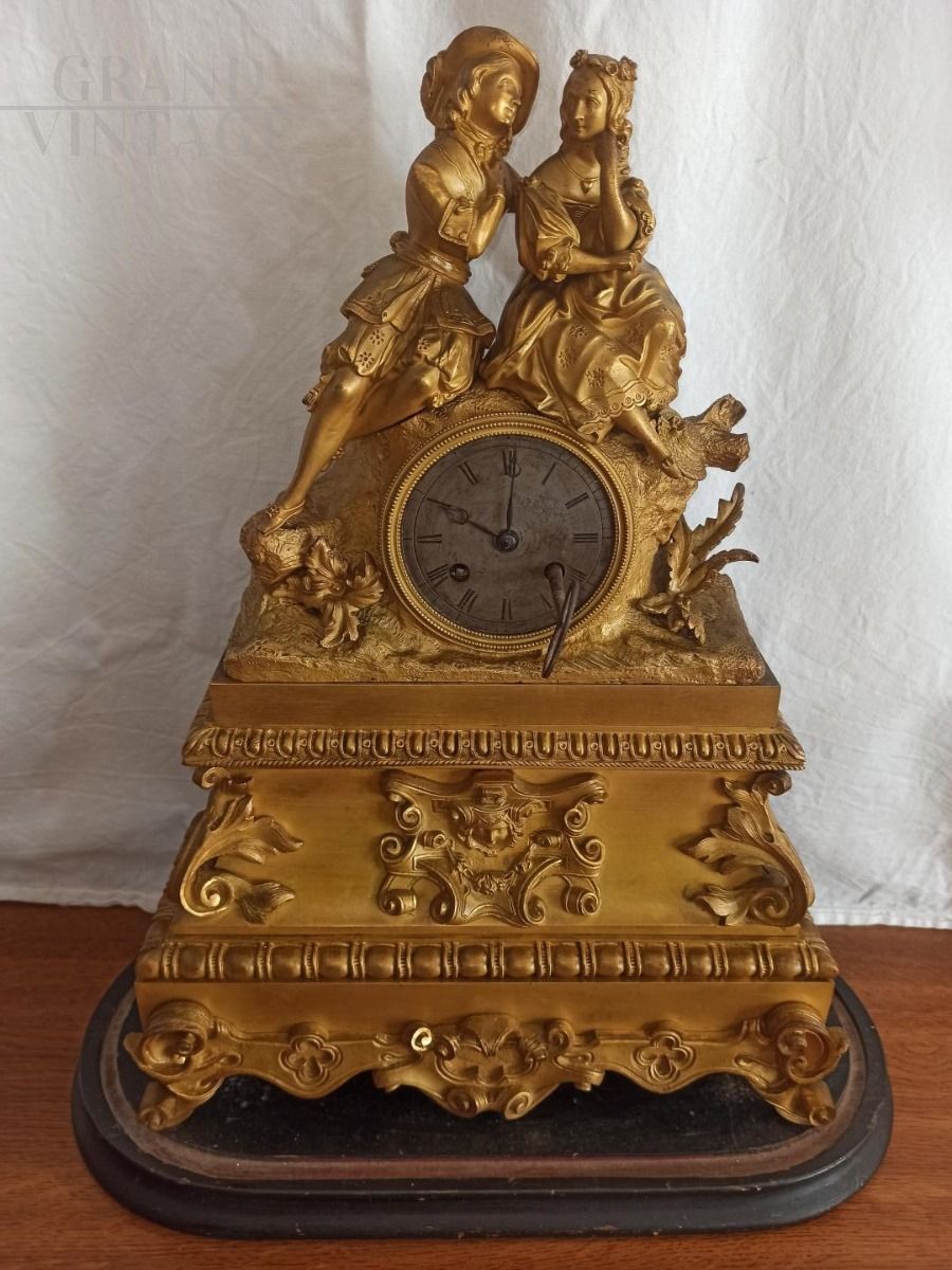 Antique Parisian clock in mercury gilded bronze, 1800s