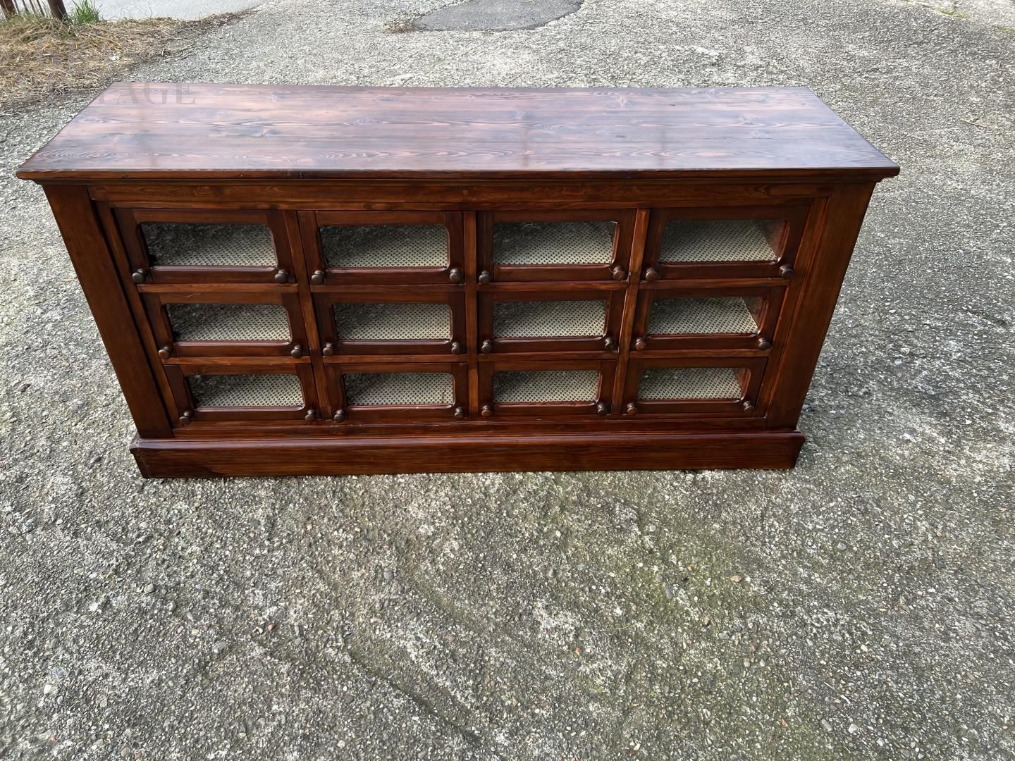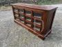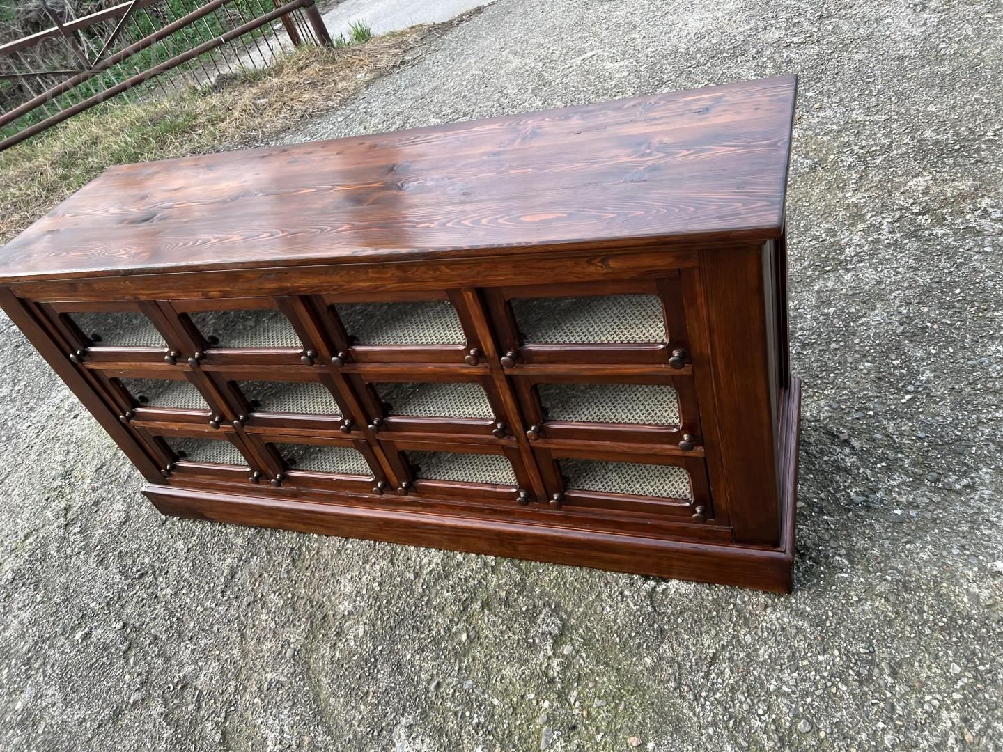 Antique pasta shop counter cabinet in solid larch from the mid-19th century