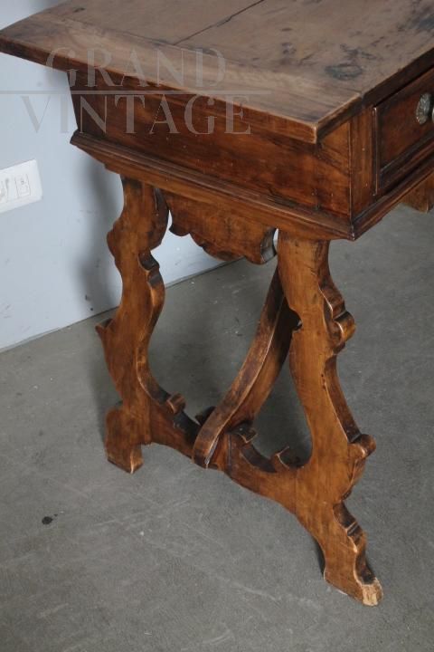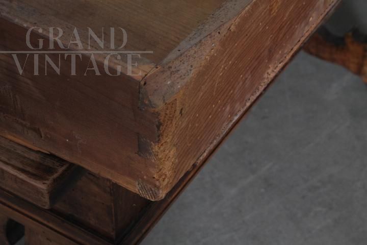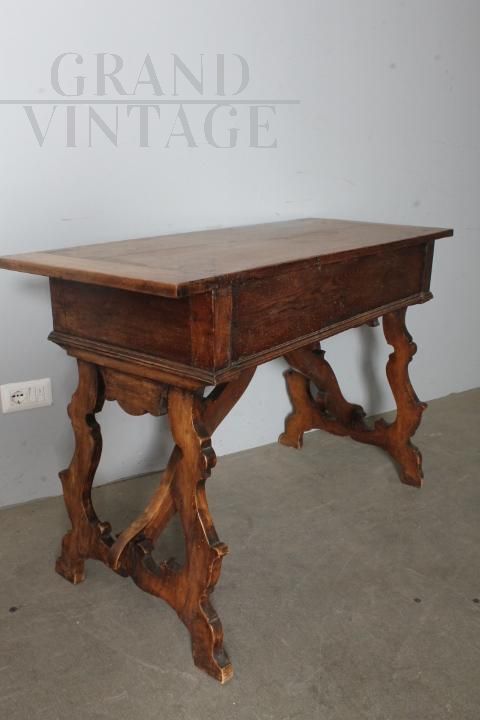 Antique Piedmontese refectory desk or table in solid walnut, 18th century