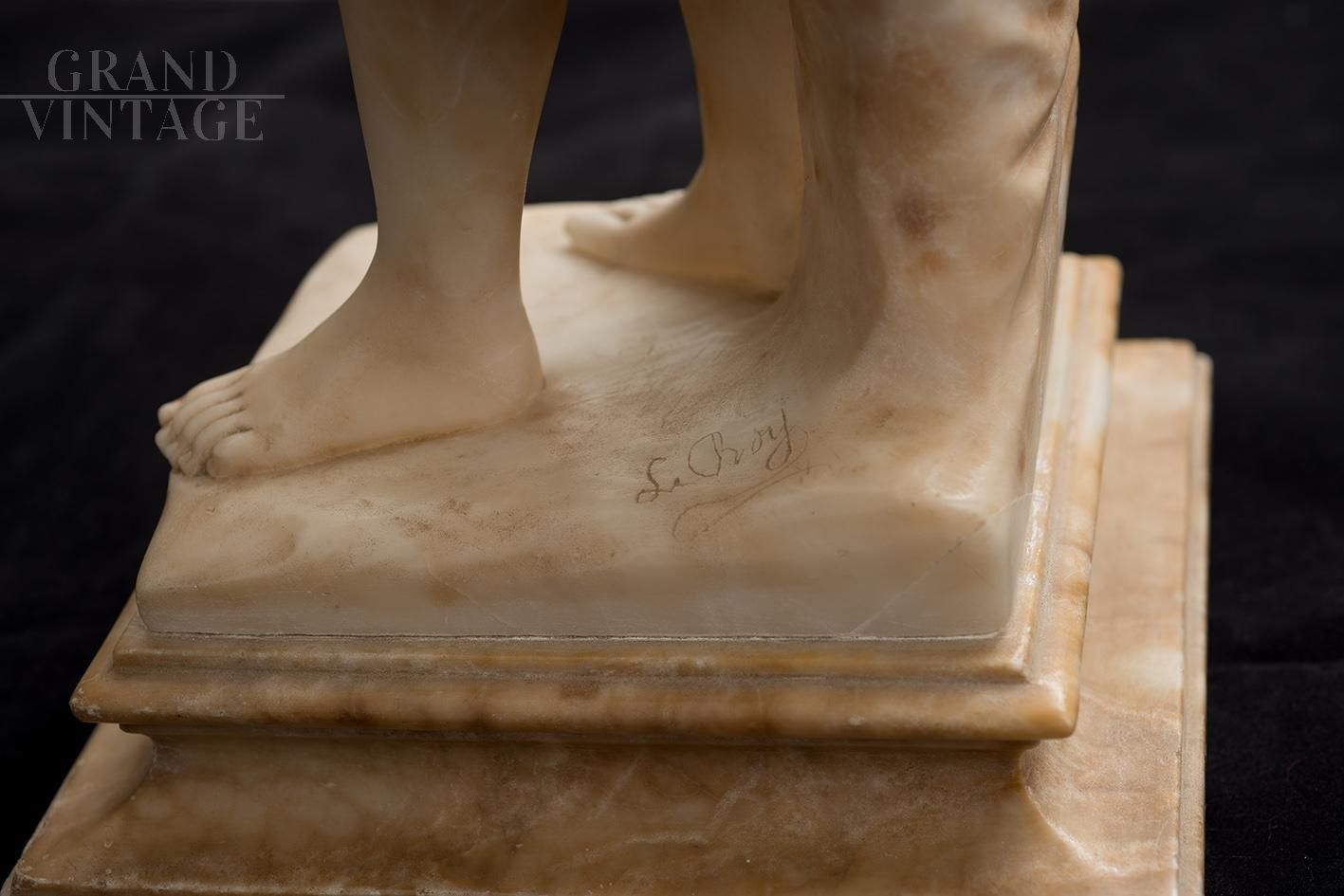 Antique sculpture of a girl in alabaster signed Le Roy, French Napoleon III era
